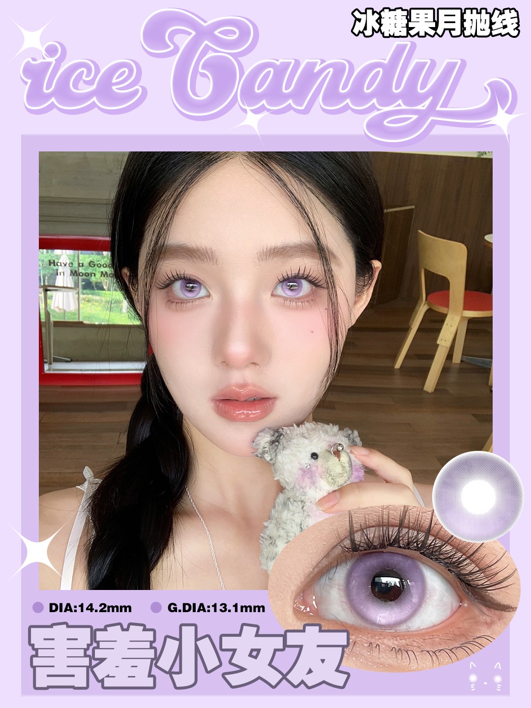 害羞小女友直径14.2mm 染色直径13.1mm 基弧8.6 含水量42%