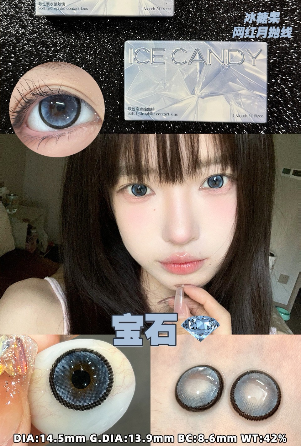 阳光小美女 直径14.2mm 染色直径13.1mm 基弧8.6 含水量42%