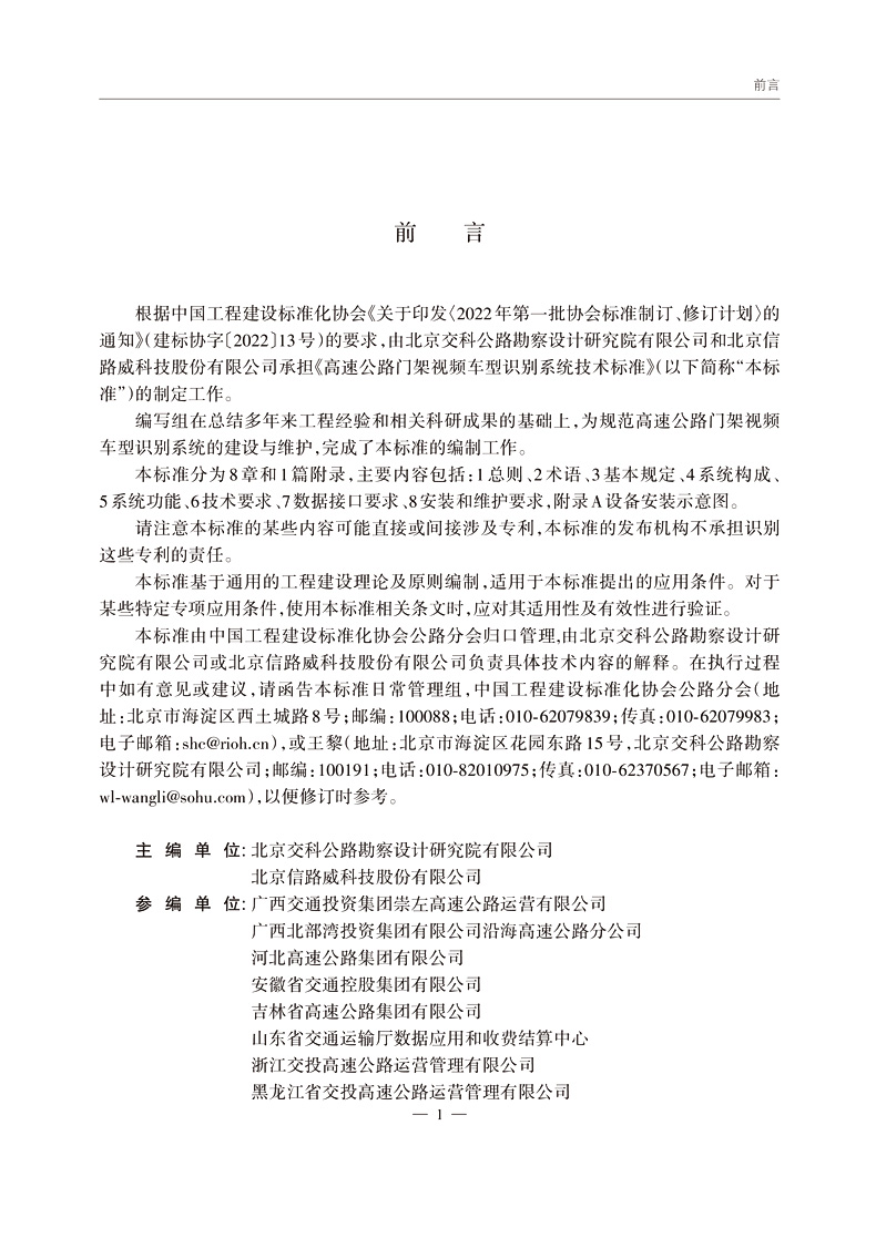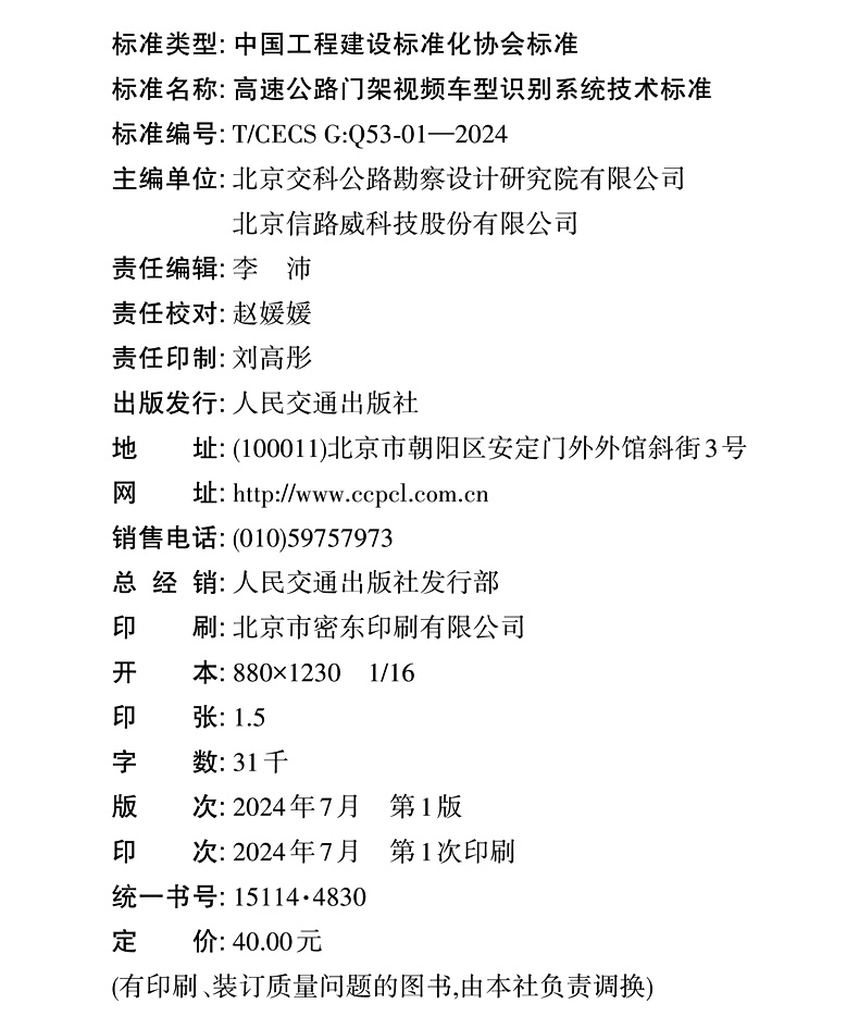 书名:高速公路门架视频车型识别系统技术标准(T/CECS G:Q53-01—2024)