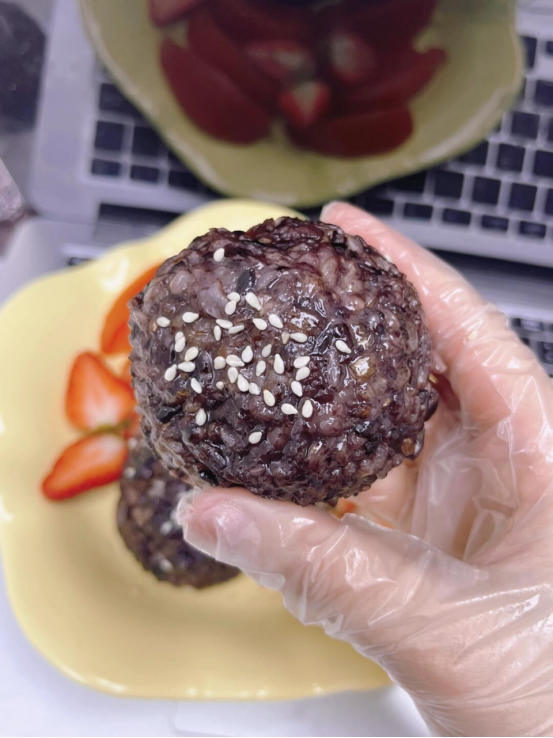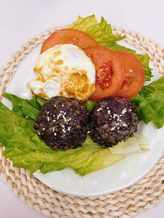 还能自己加水果蔬菜.😋😋😋 随便摆盘都是精制到没办法说.尊嘟爱麻了. 吃这款八黑八宝饭团. 又营养又不怕长肉肉.超级Nice.😋 随便配点小青菜什么的,省心省时. 超适合早8上班族,上班轻松搞定.