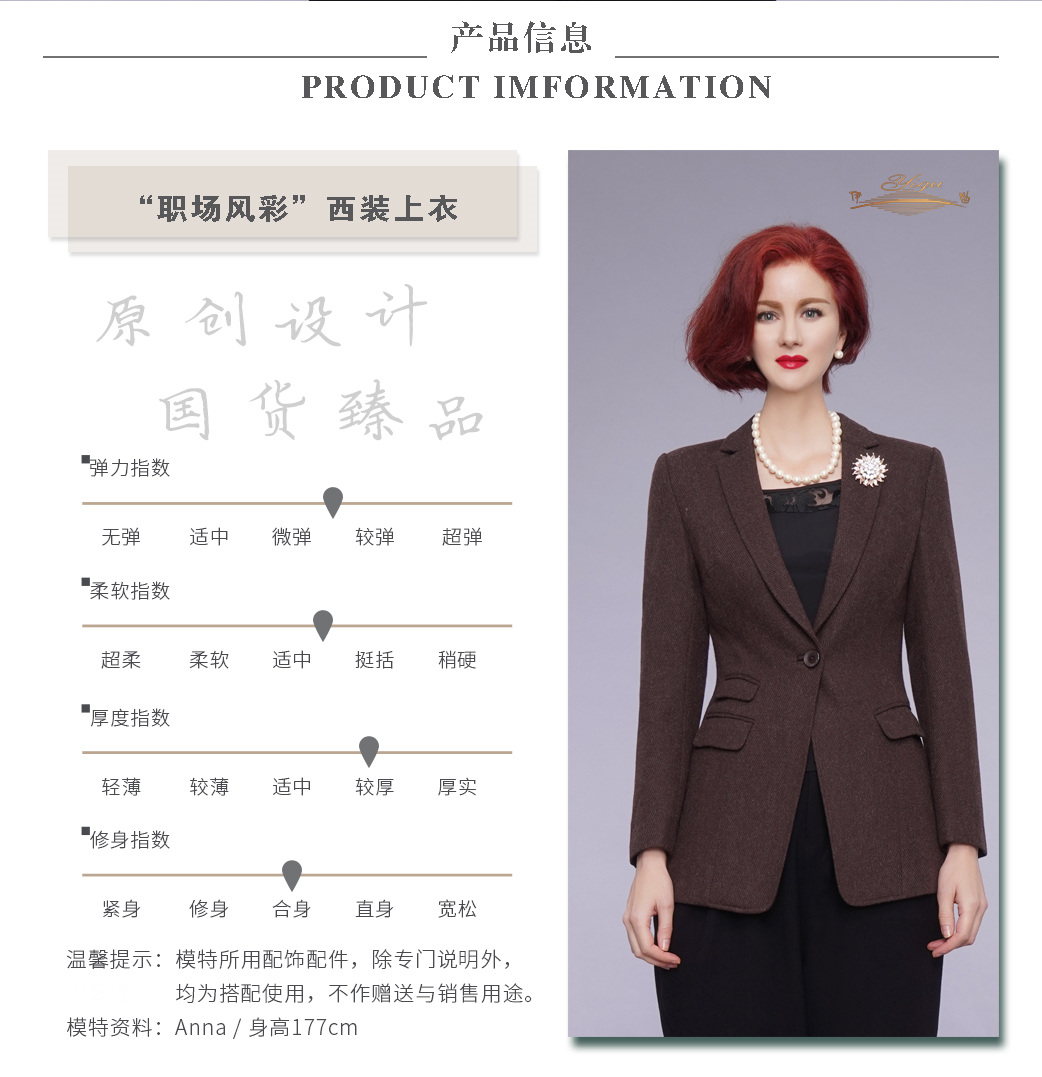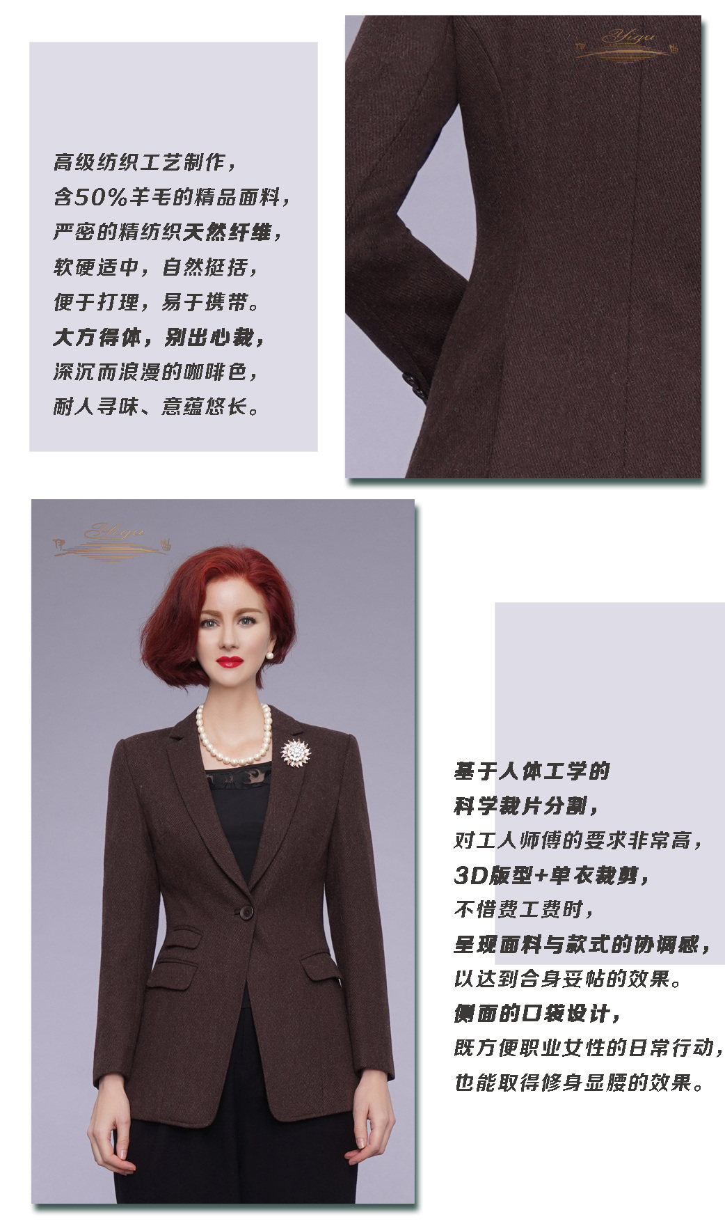 【特惠】YIQU丨“职场风彩”西装上衣(咖啡·含50%羊毛)P