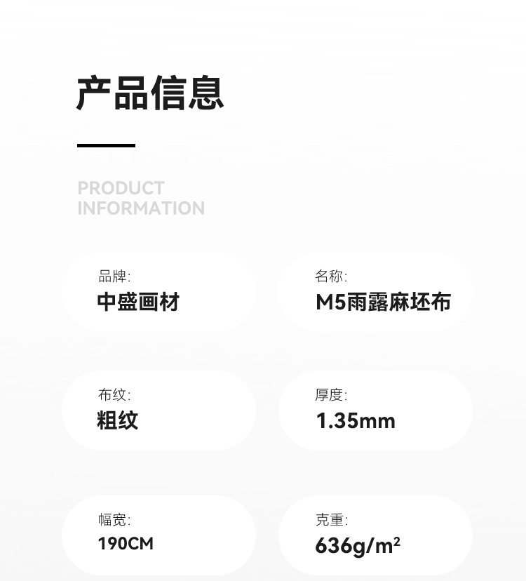 Monet5粗纹坯布 手感厚实雨露麻亚麻油画布幅宽190cm