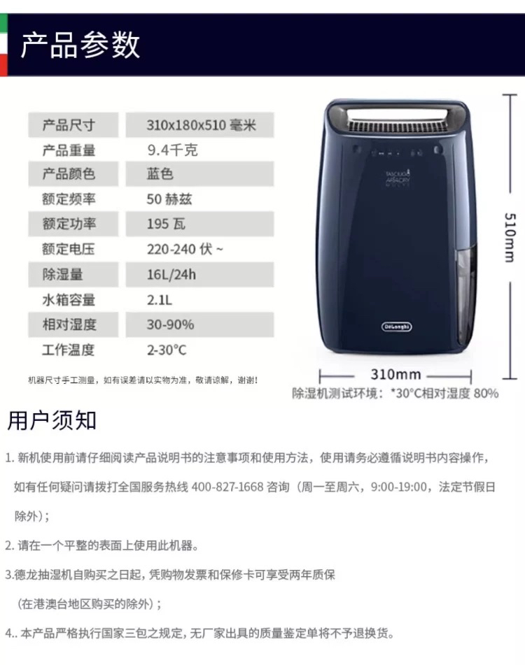 德龙DEX16 官方折扣机 样品机 购买日期开始全国联保两年 家用除湿小能手
