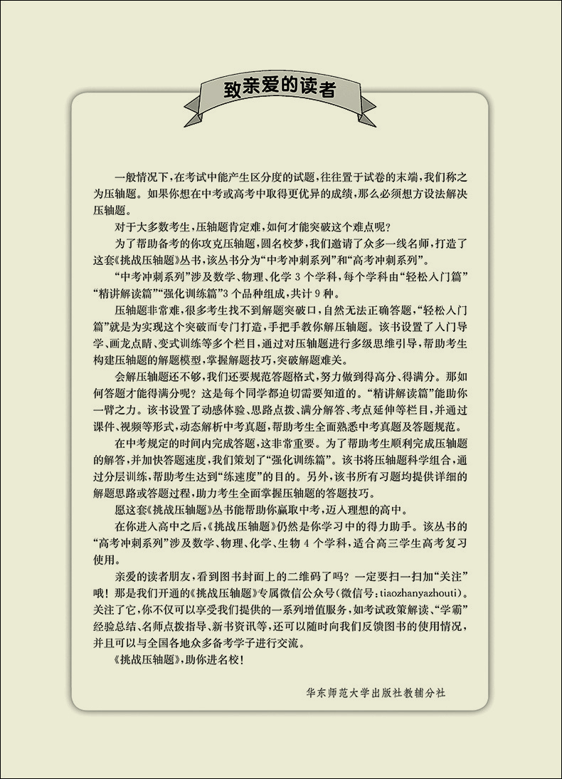 2021版 挑战压轴题 中考物理 精讲解读篇 第11版 初一初二初三初中七八九年级复习培优冲刺教辅 真题模拟训练 华东师范大学出版社