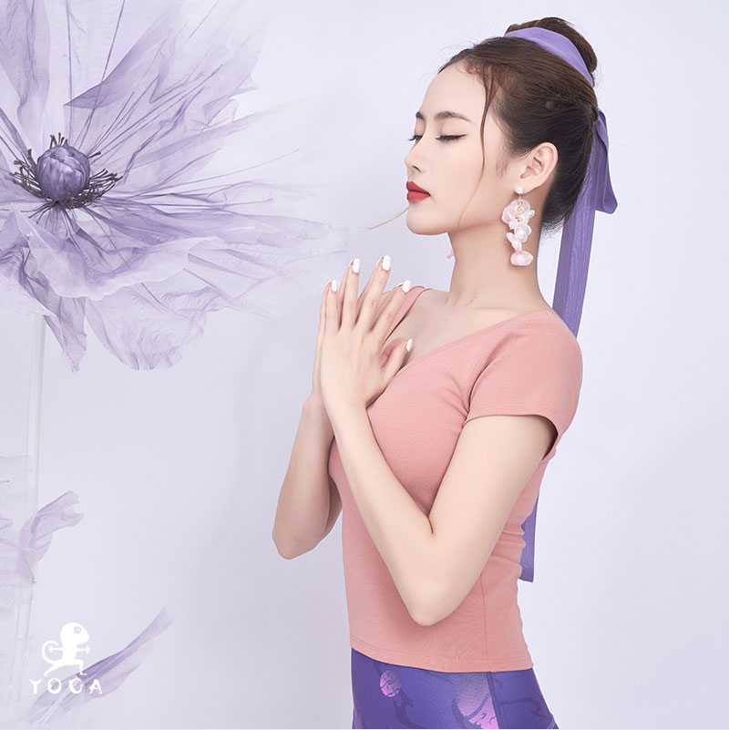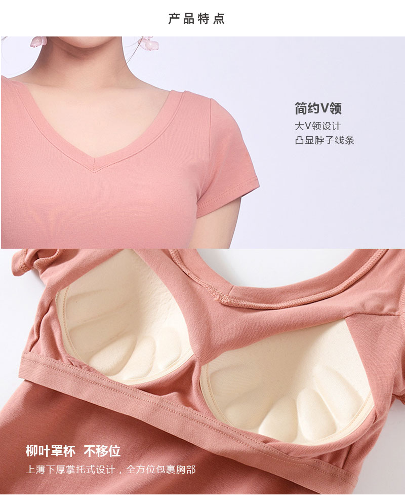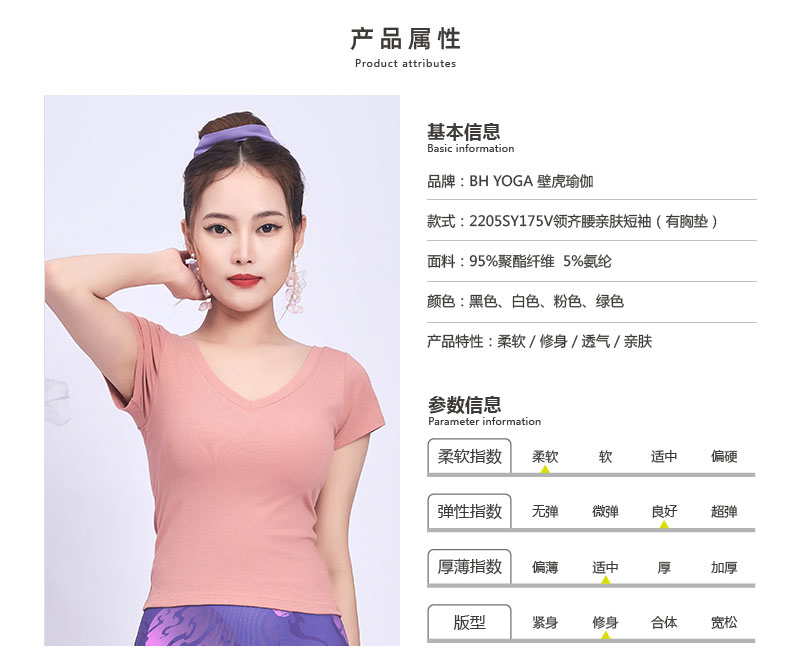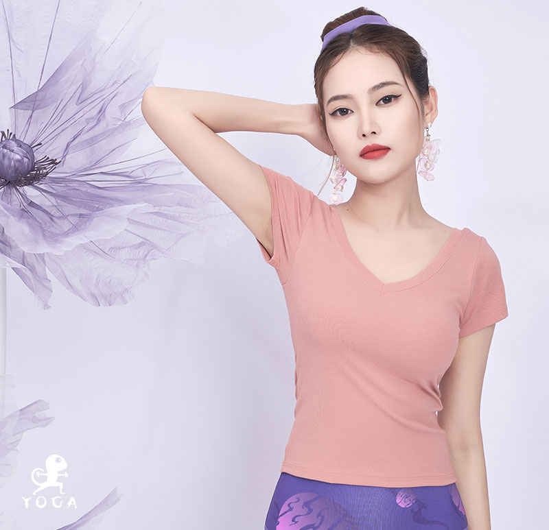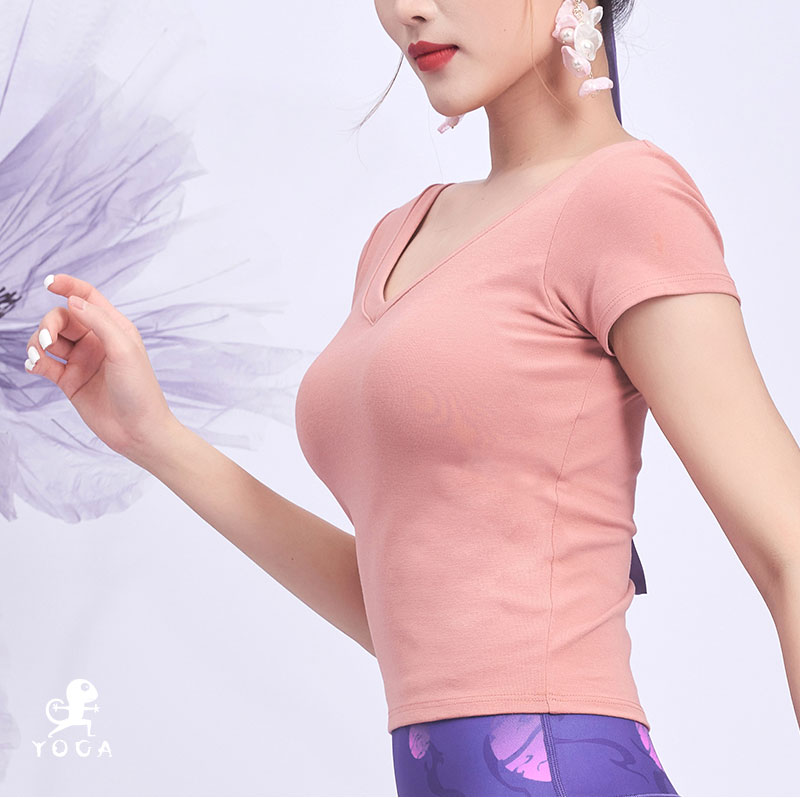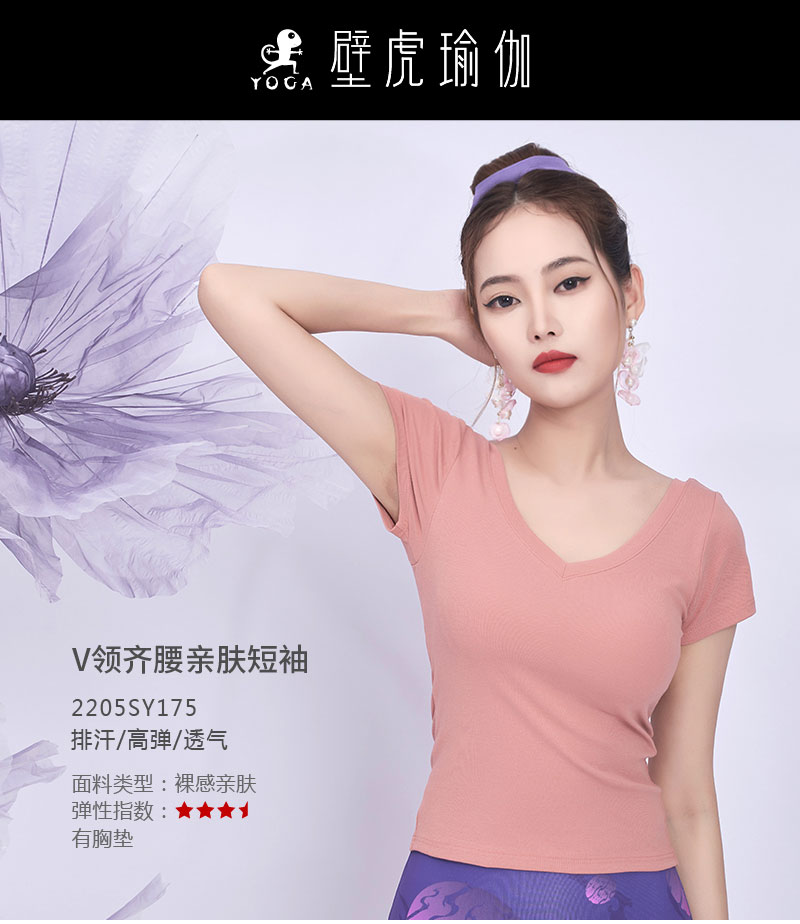 壁虎瑜伽【2205SY175】V领齐腰亲肤短袖(有胸垫)【5天发货】