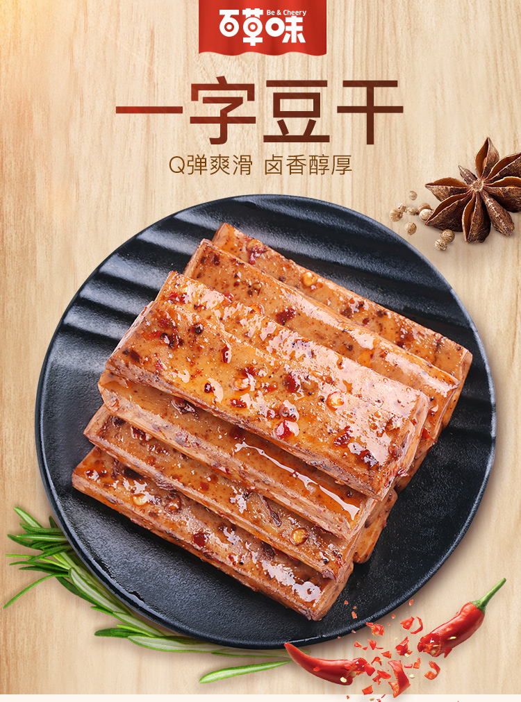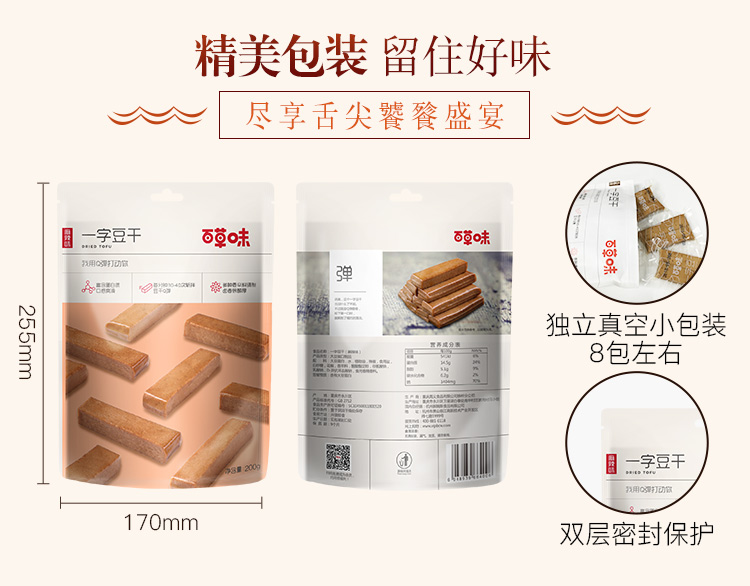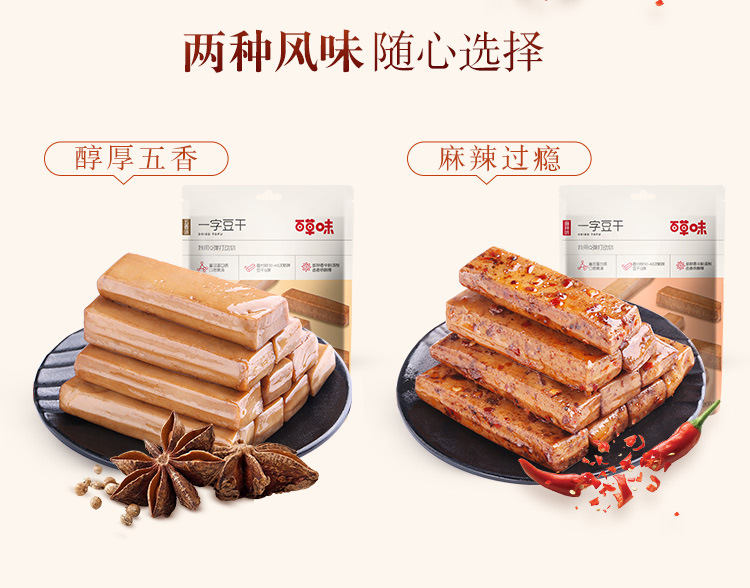 [小滋心选]【99元选20件】百草味一字豆干200g 弹韧香辣 一口爽个够