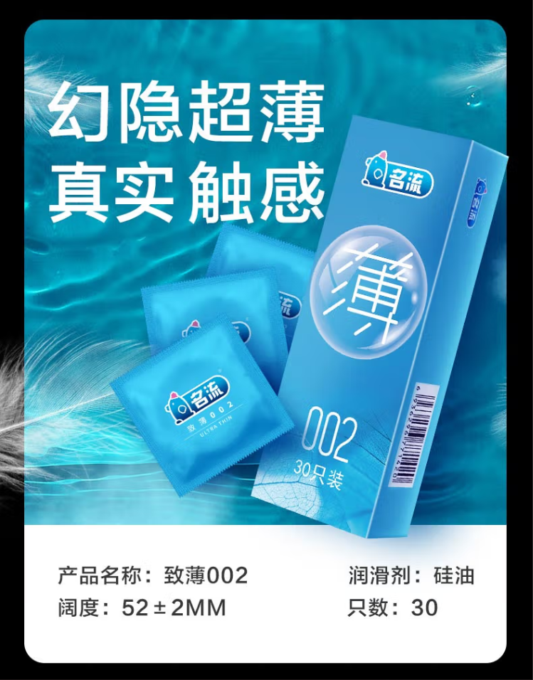 名流避孕套光面超薄安全套至薄002安全套中号成人性用品男用套套90只装