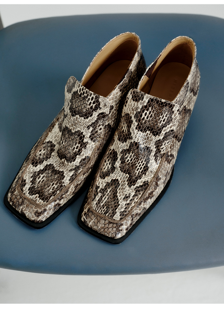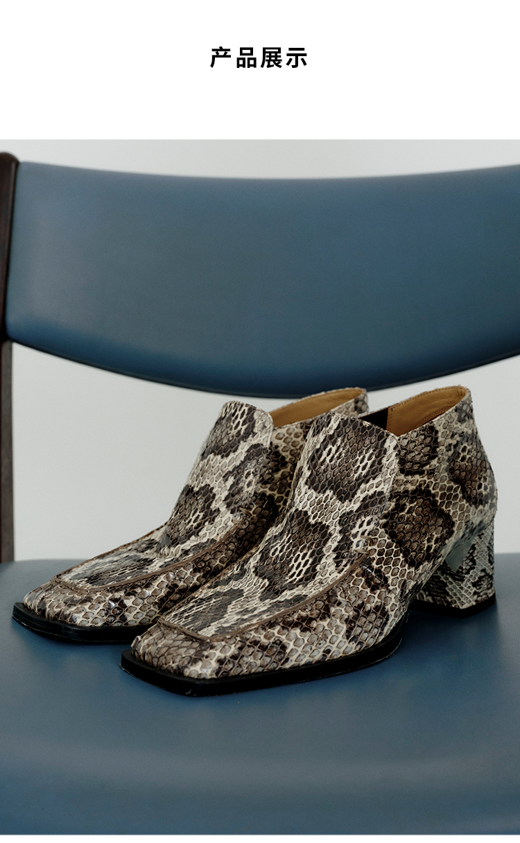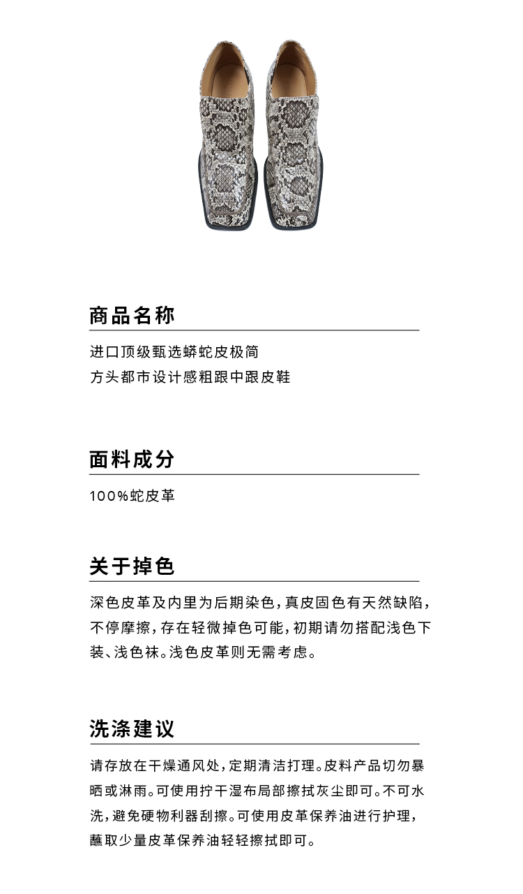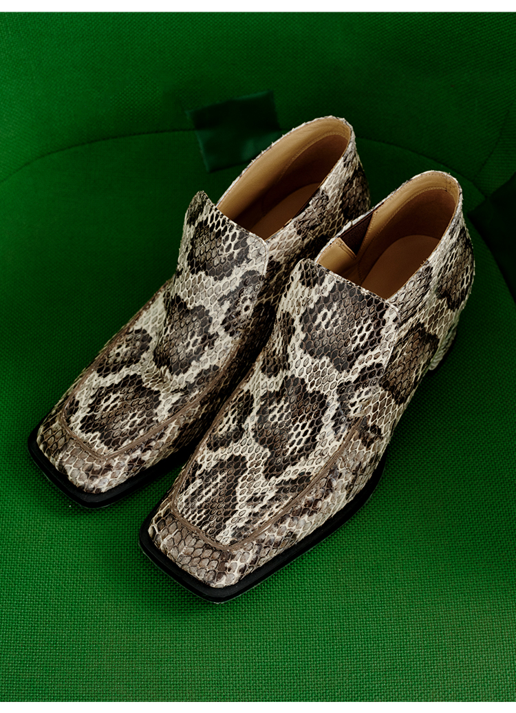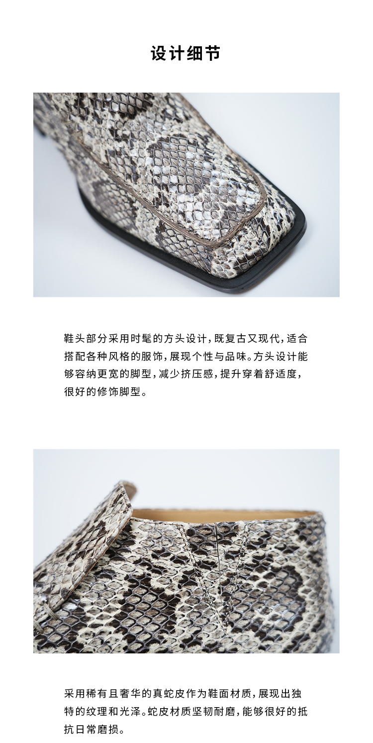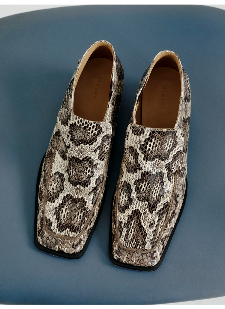 HIDEMI 进口顶级甄选蟒蛇皮极简方头都市设计感粗跟中跟皮鞋