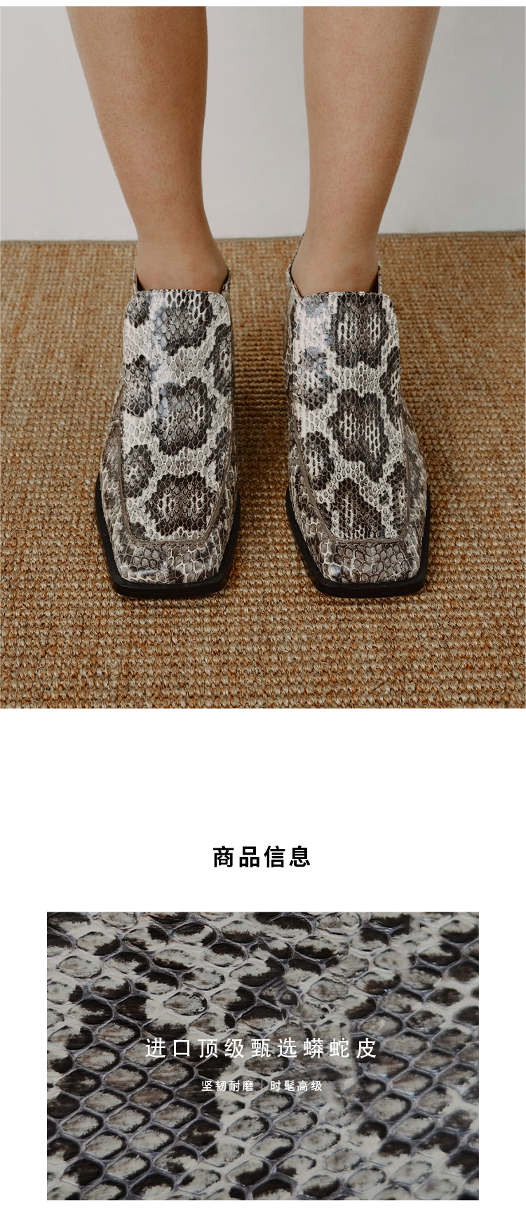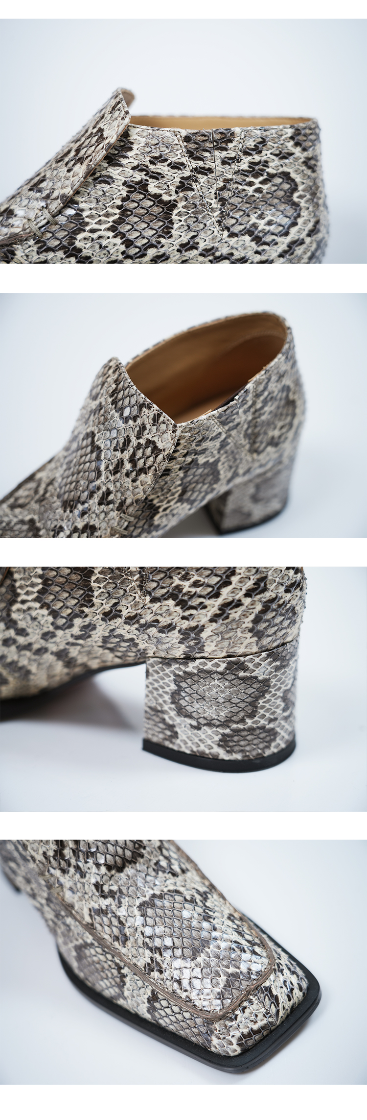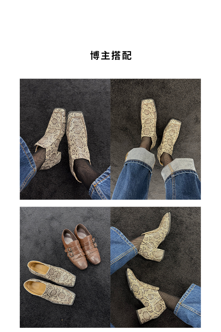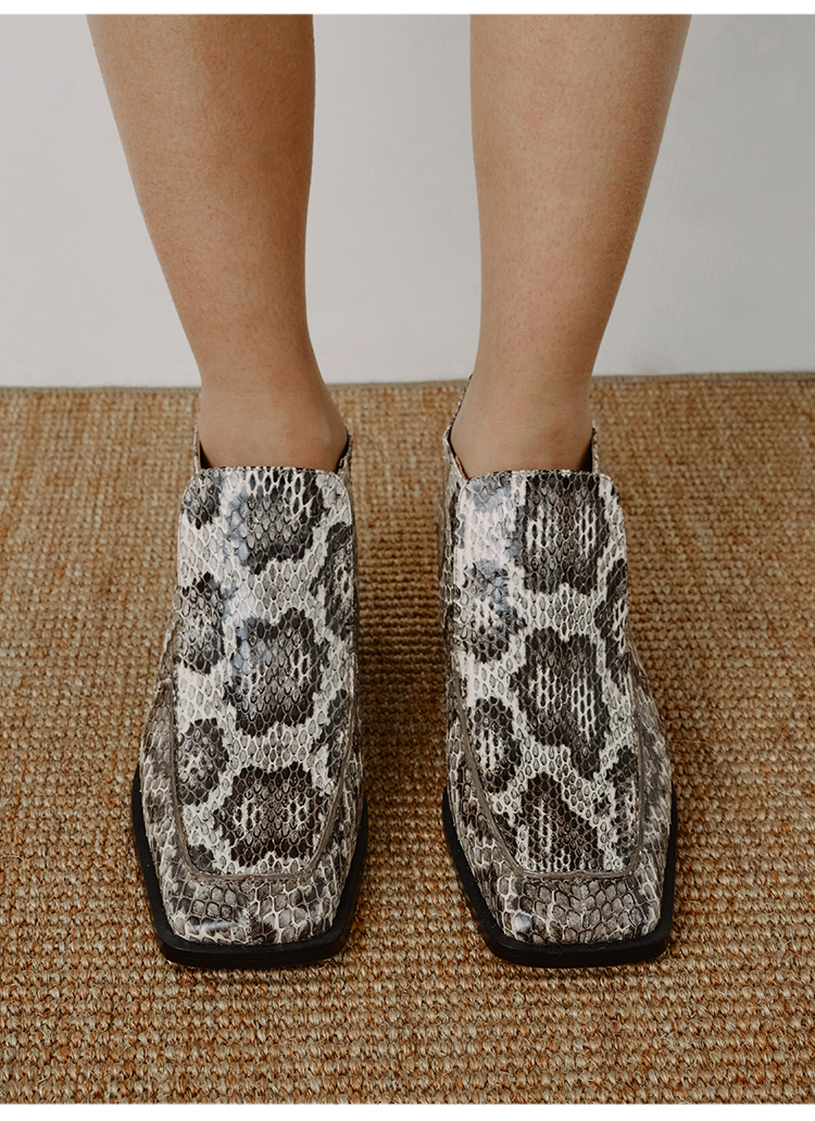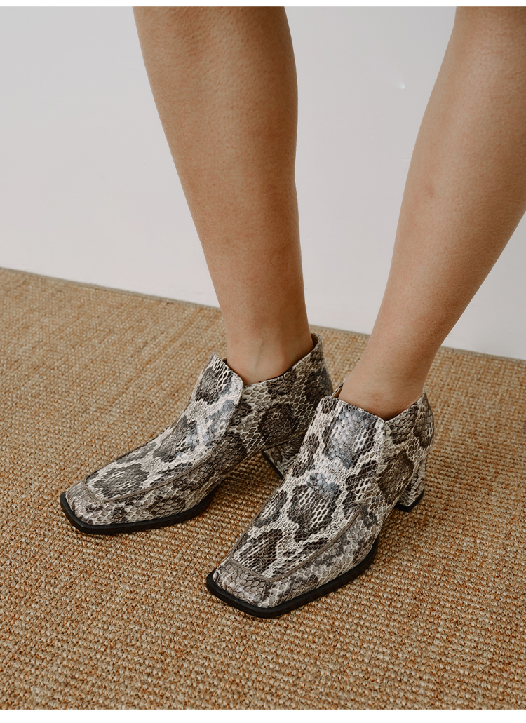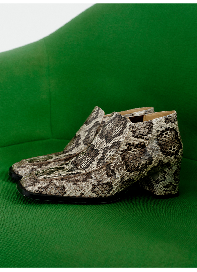HIDEMI 进口顶级甄选蟒蛇皮极简方头都市设计感粗跟中跟皮鞋