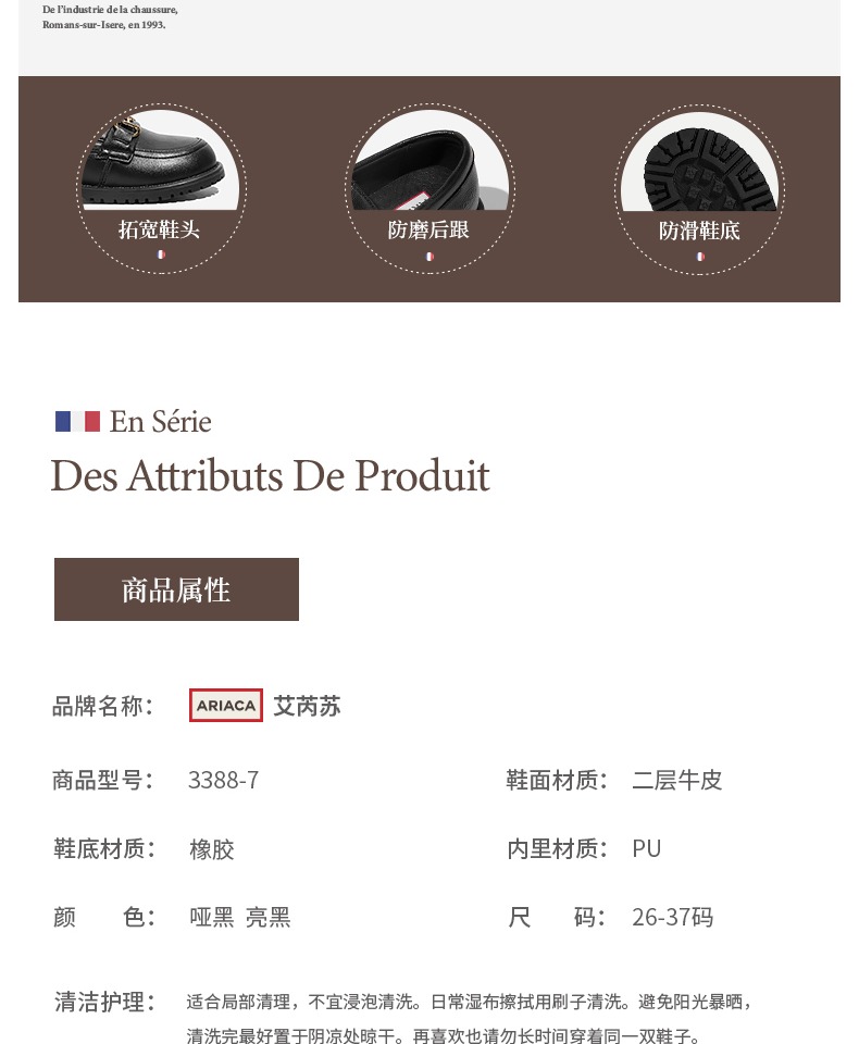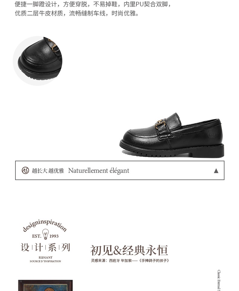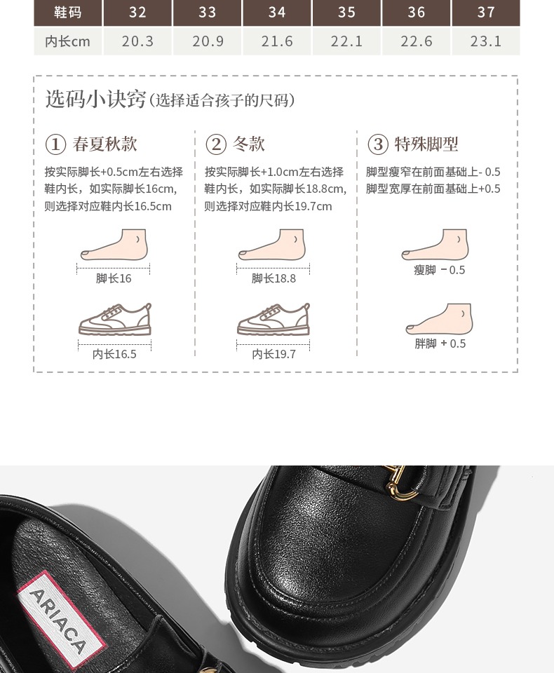ARIACA女童乐福鞋黑皮鞋2025春秋新款女孩单鞋英伦风校园儿童鞋子3388-7