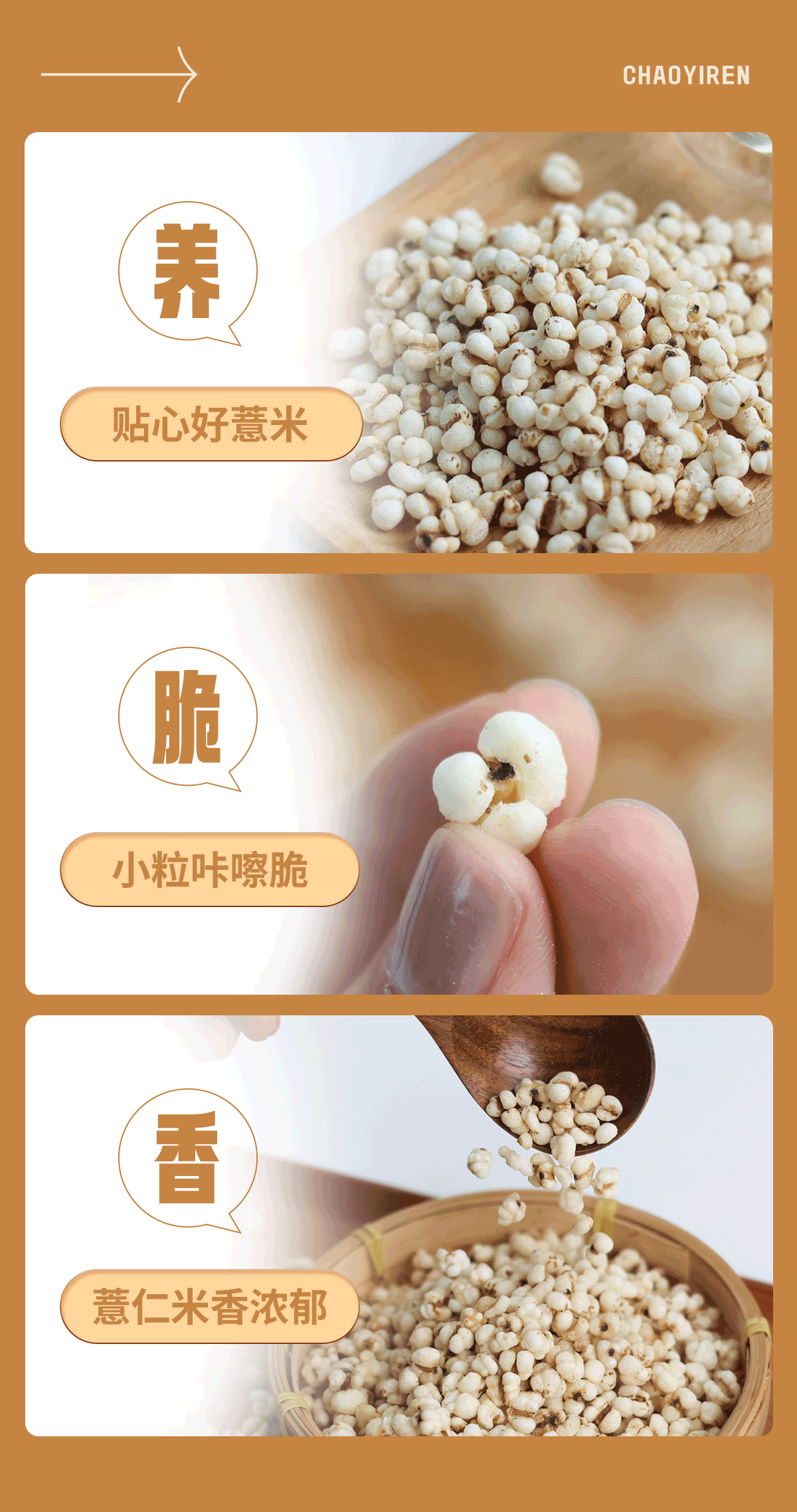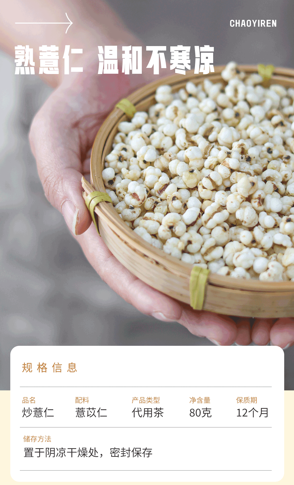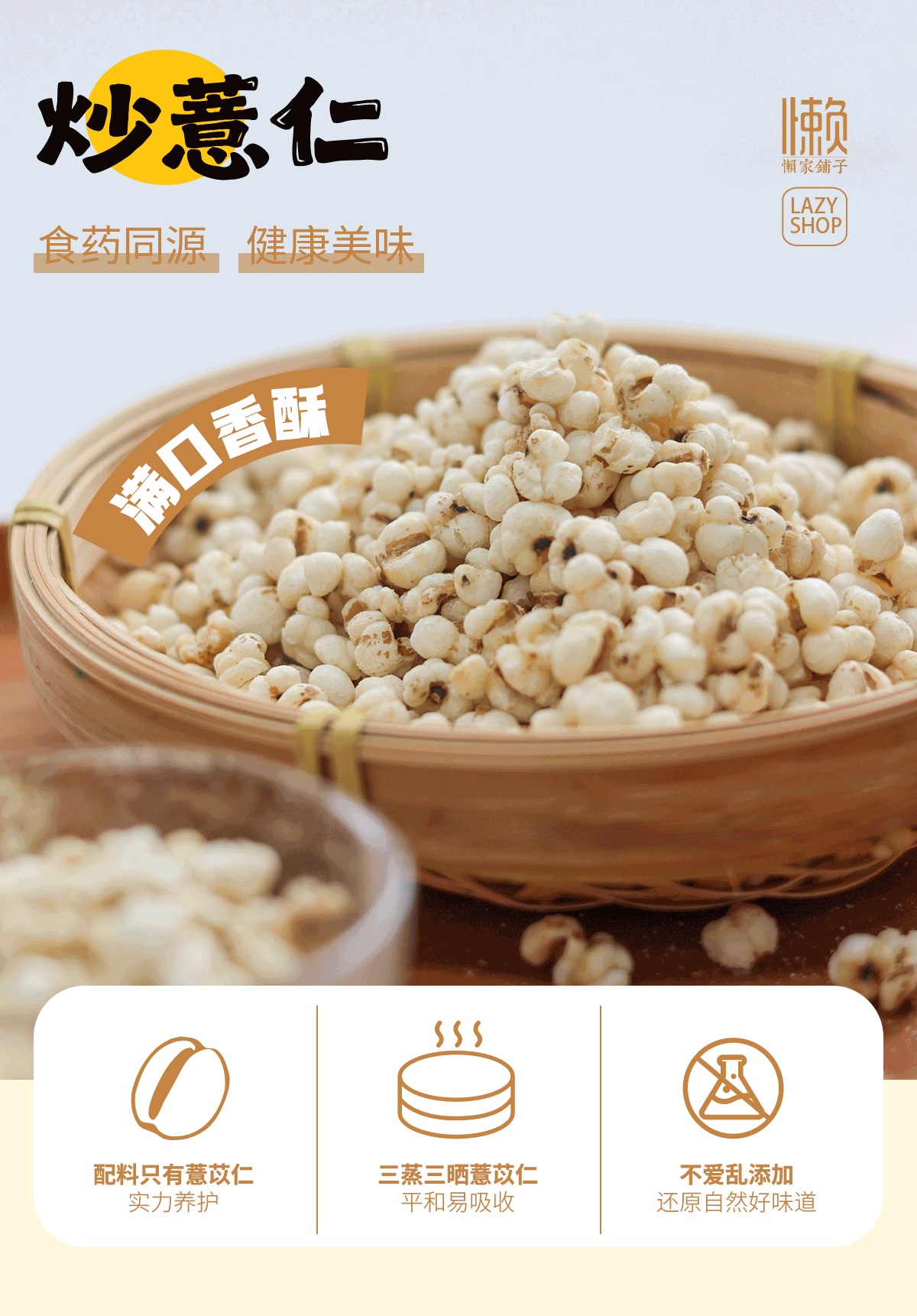 【炒薏苡仁】 三蒸三晒 文火麸炒 温和不寒凉 80g