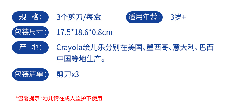 绘儿乐幼儿系列圆头安全剪刀3件装81-1323