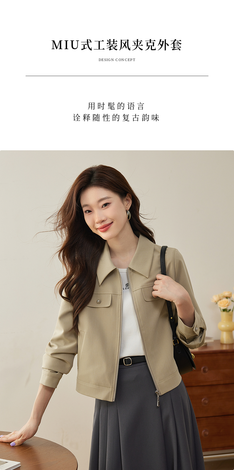 【年货节】熙世界美式工装风外套小个子2025秋装新款气质休闲短款夹克上衣