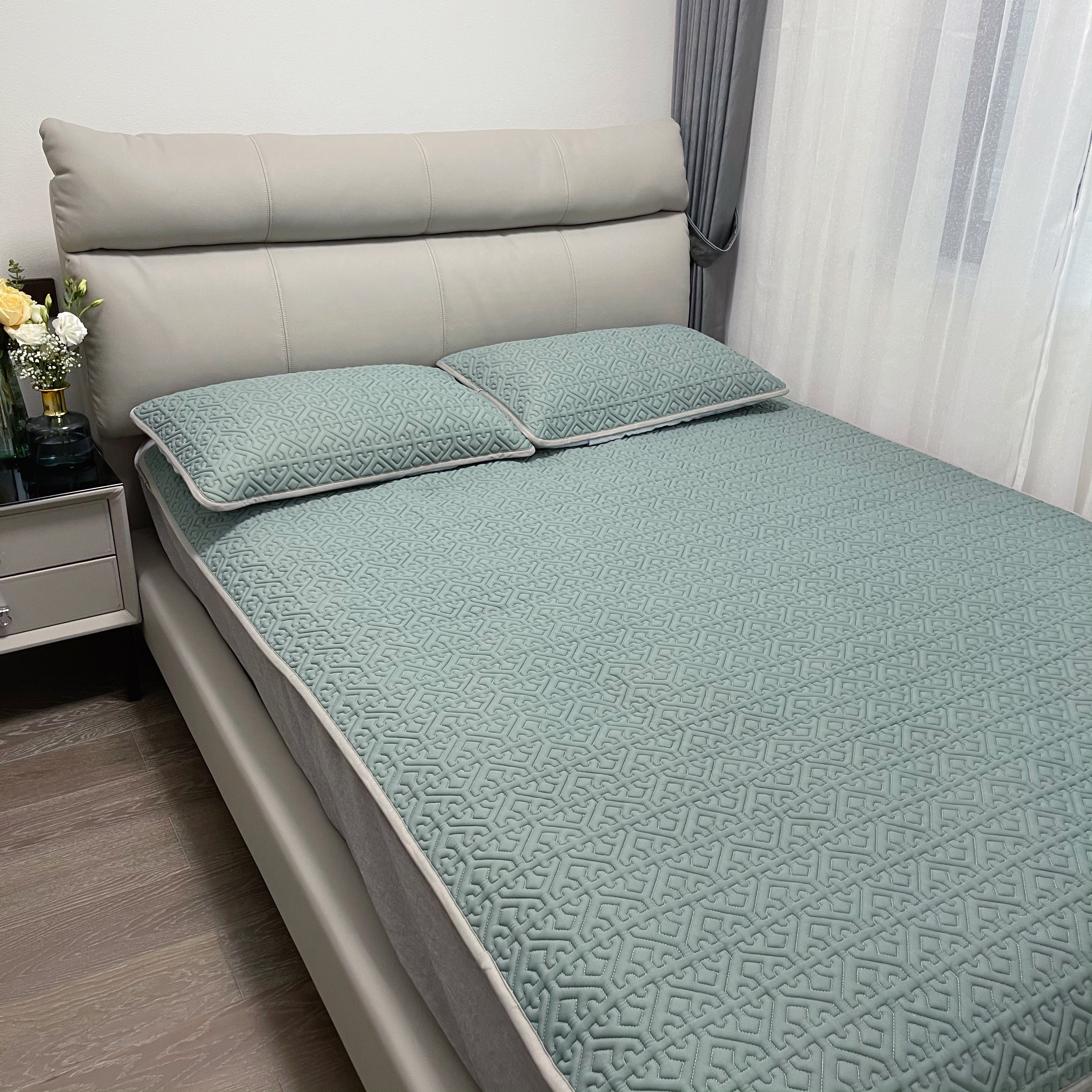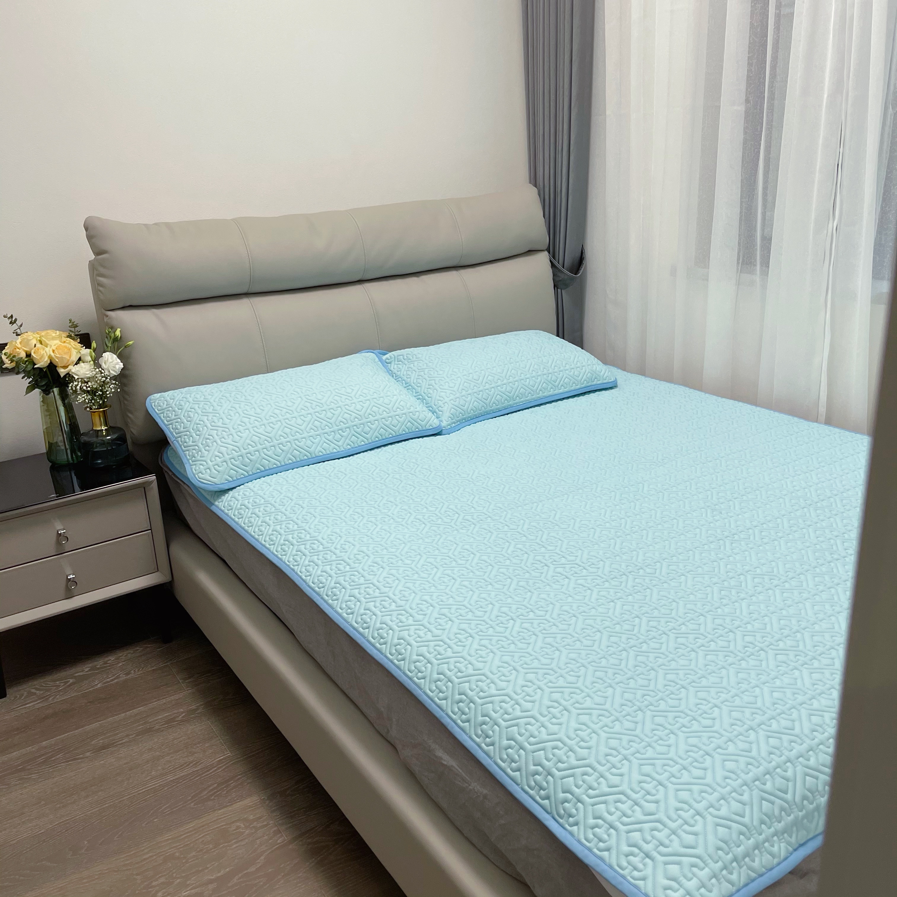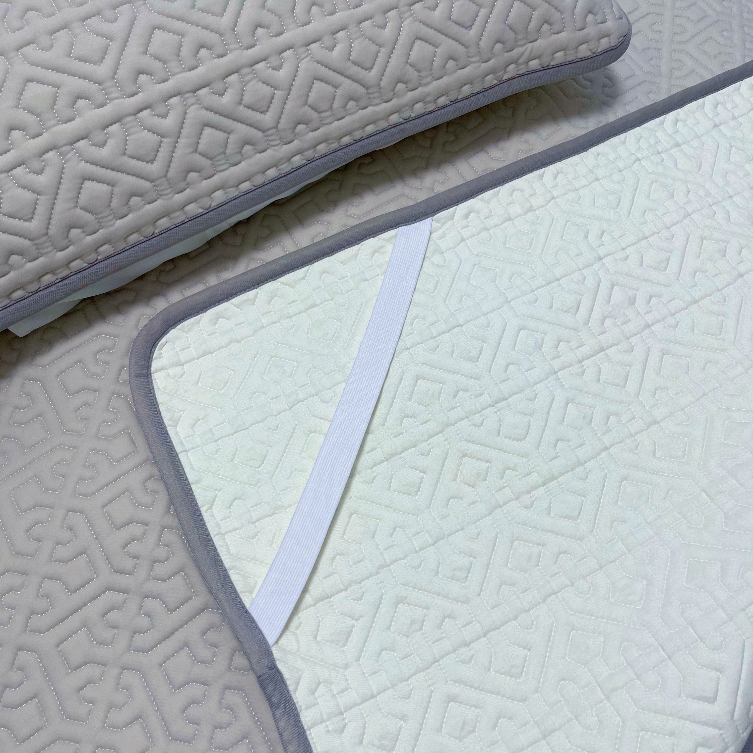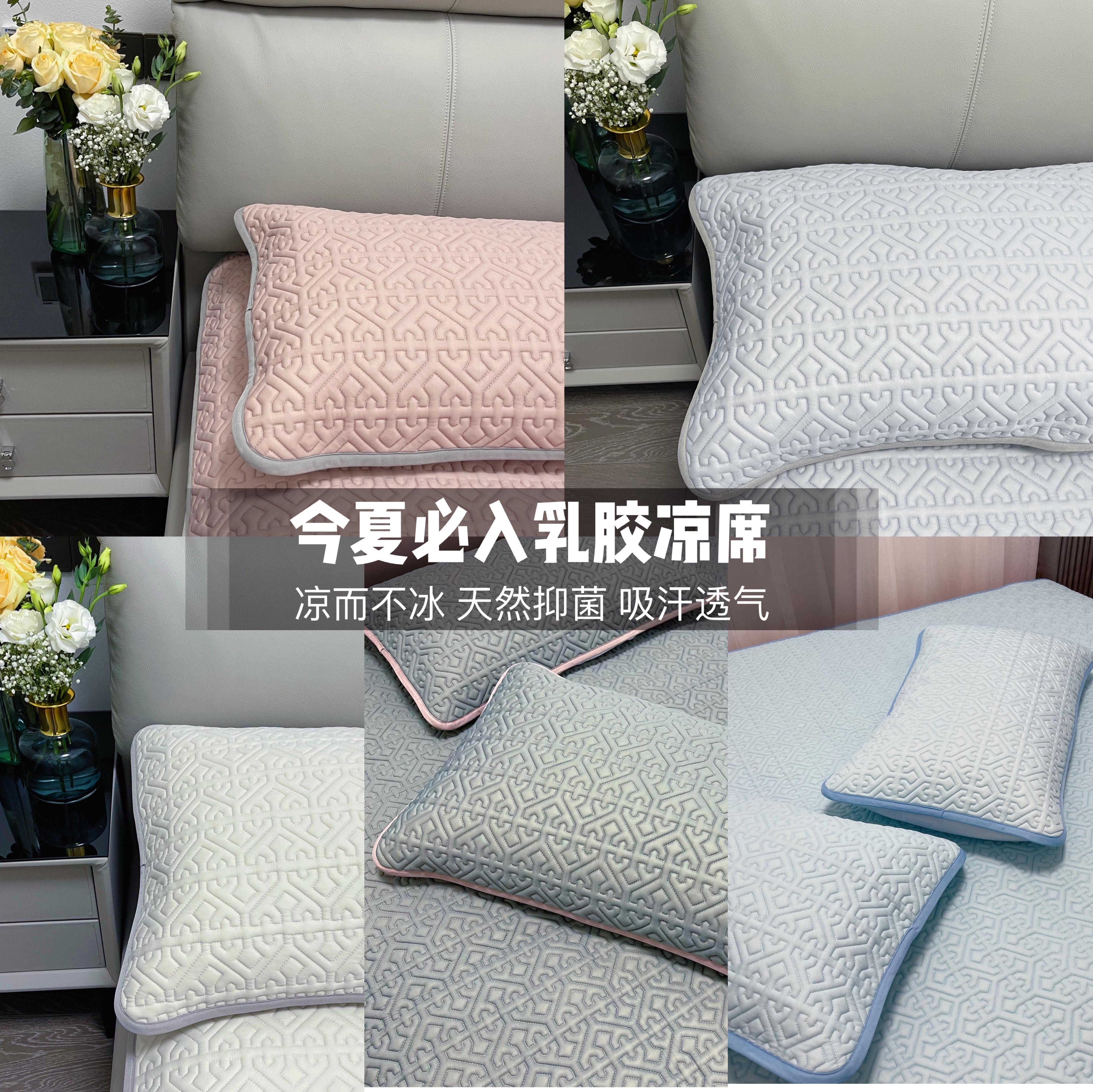 底部做了防滑颗粒还有固定的袋子,一套乳胶凉席配两个枕套,这个夏天,再入一条夏被就足以了。
