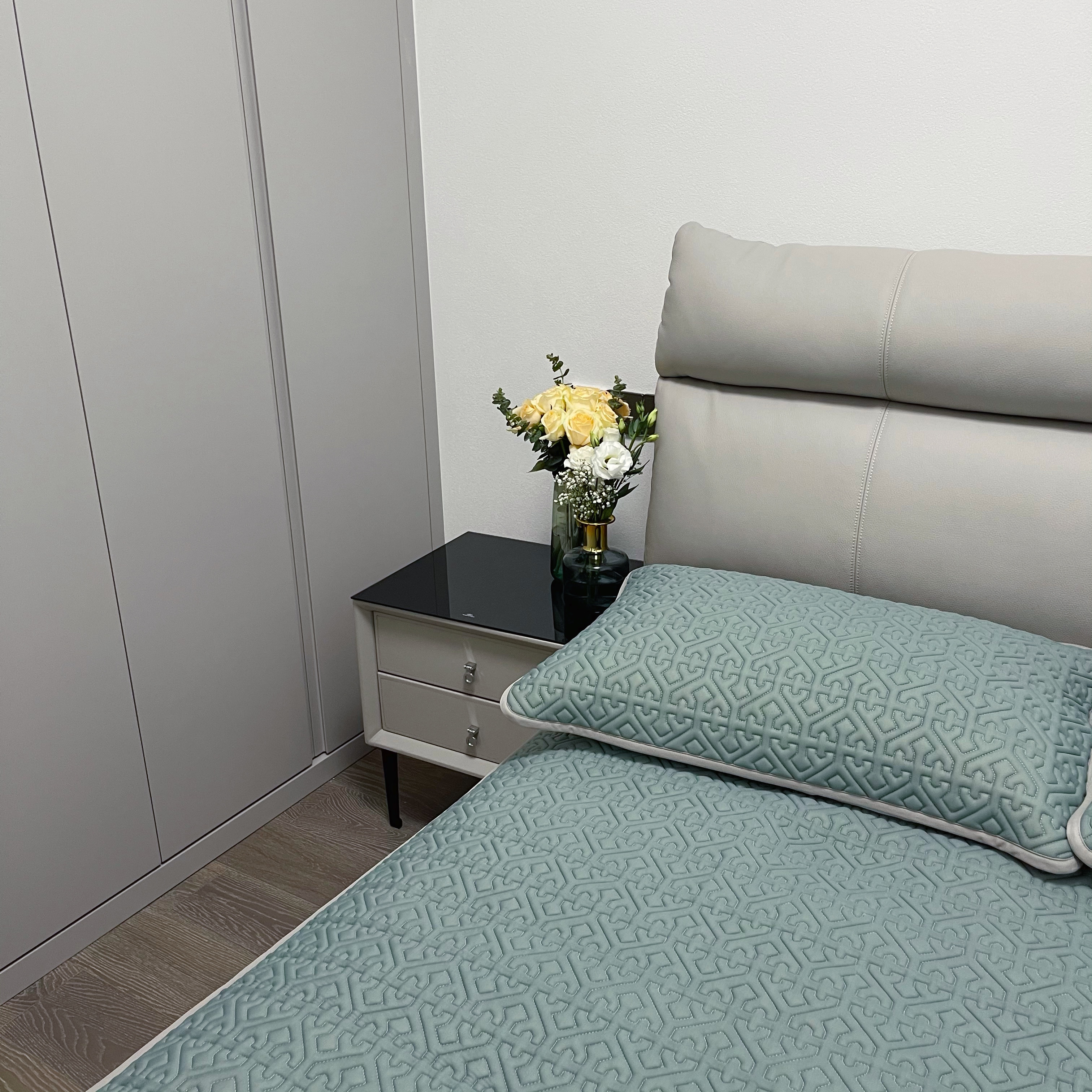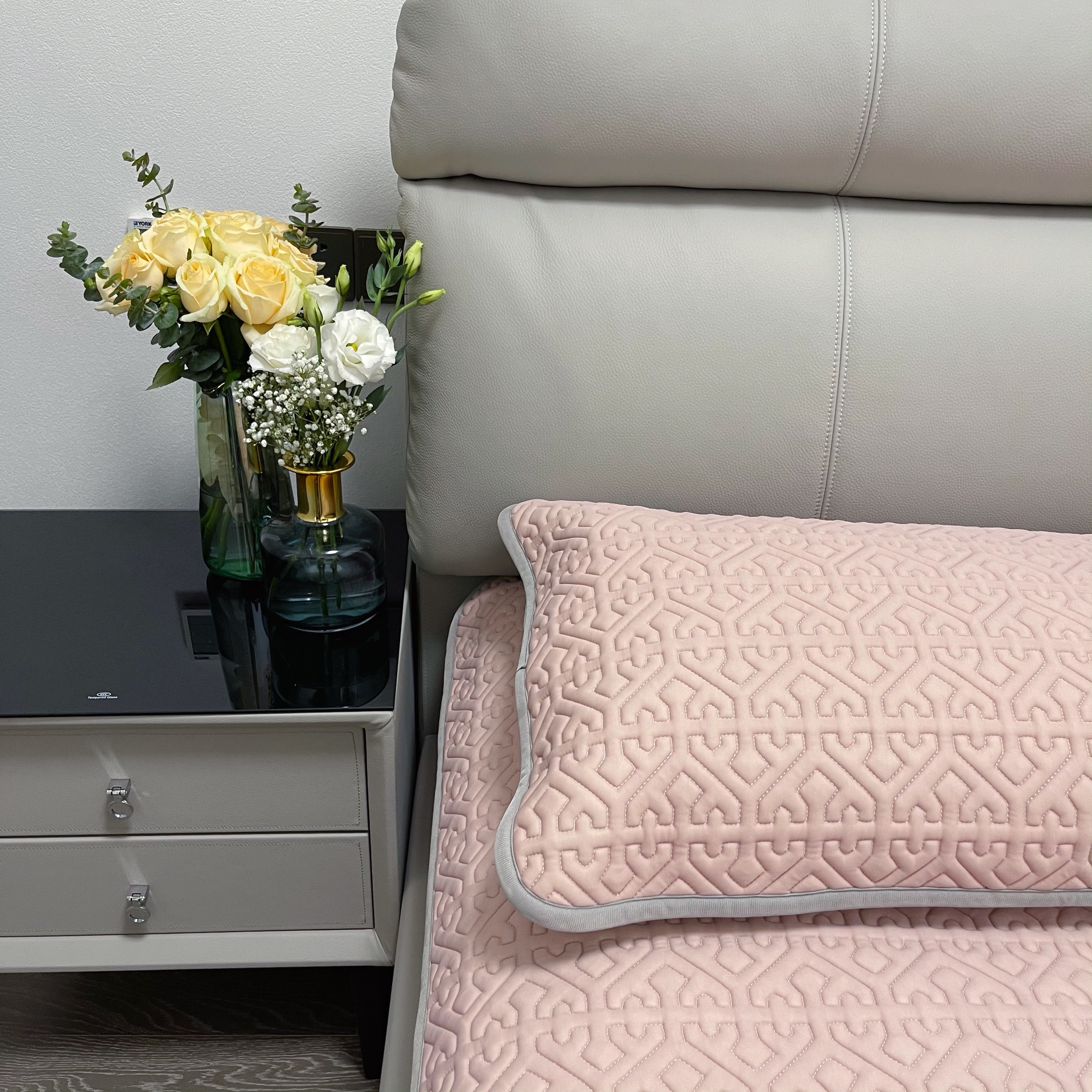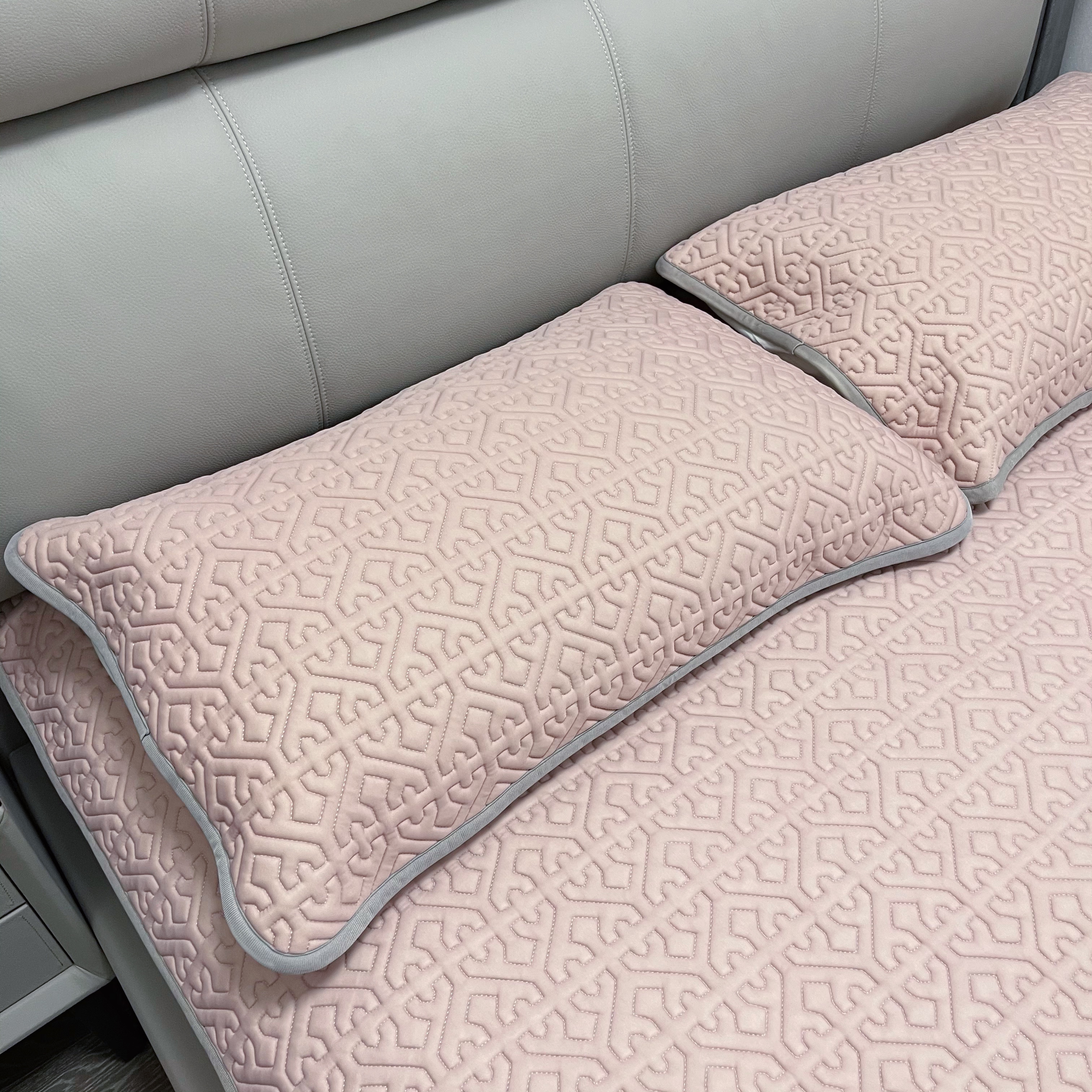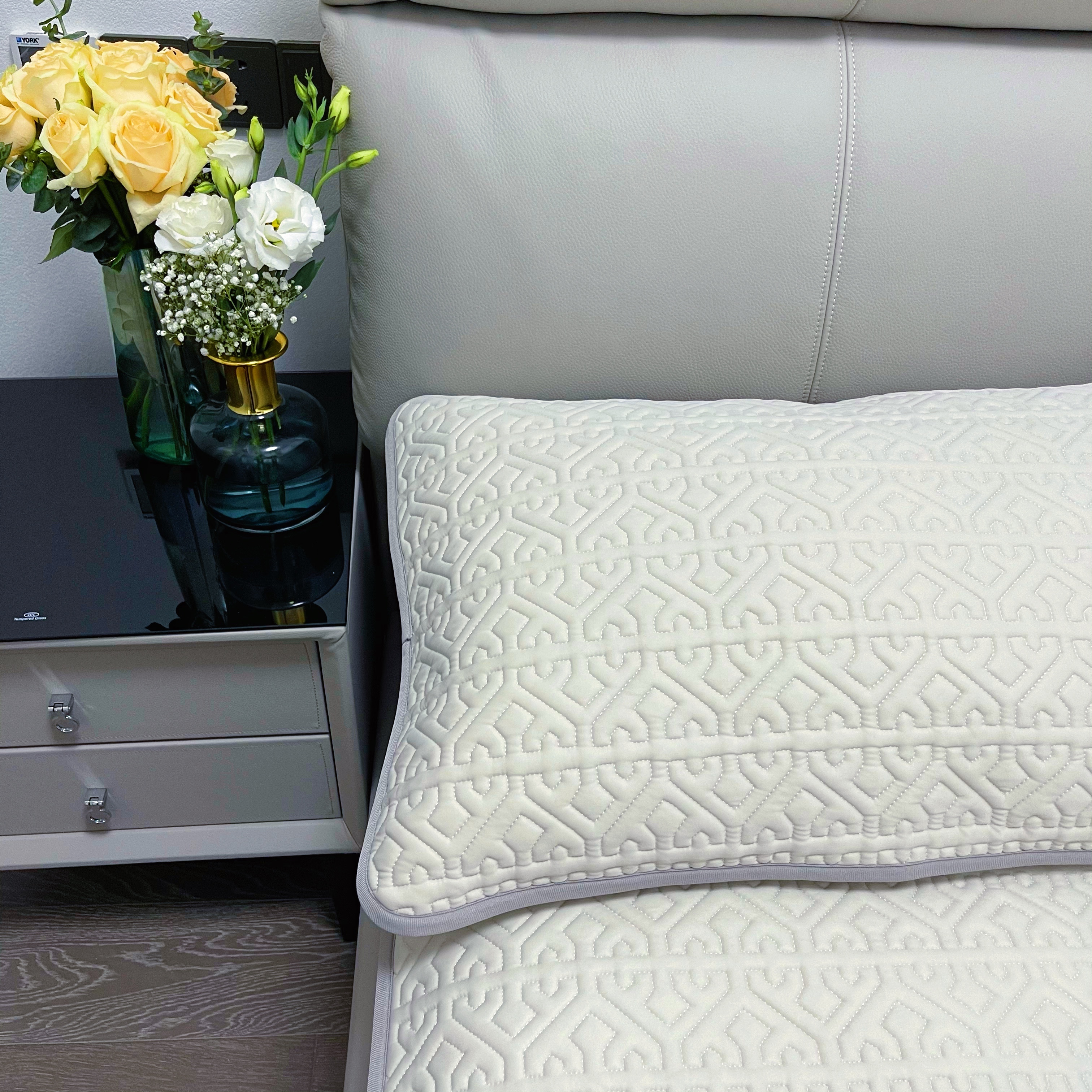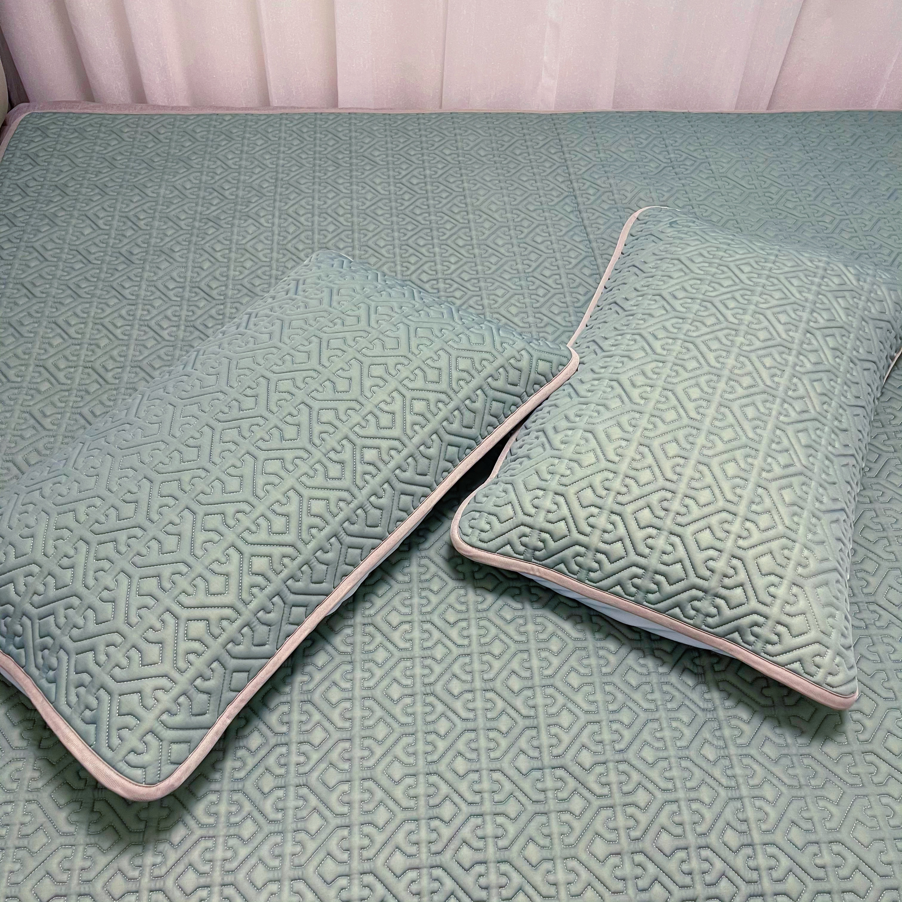 底部做了防滑颗粒还有固定的袋子,一套乳胶凉席配两个枕套,这个夏天,再入一条夏被就足以了。