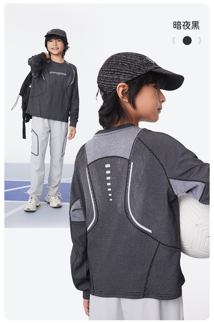 onmygame【黑武士系列】儿童长袖T恤2025新款男童上衣春季运动服KE11A210613