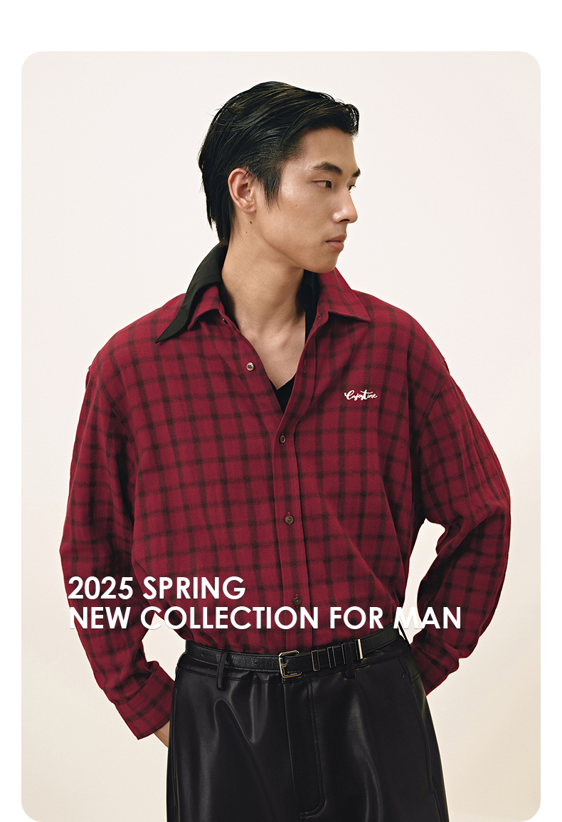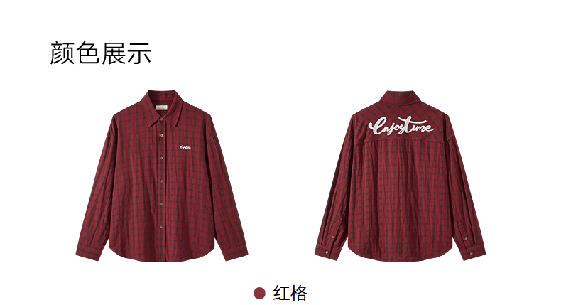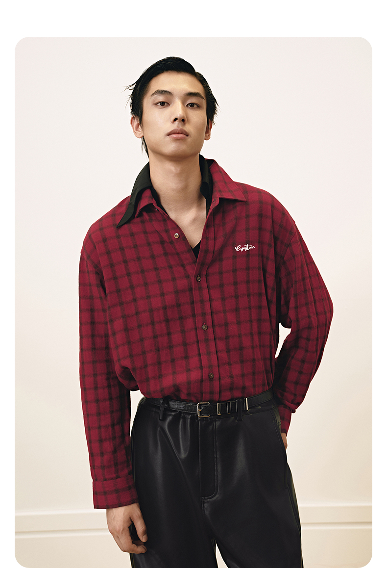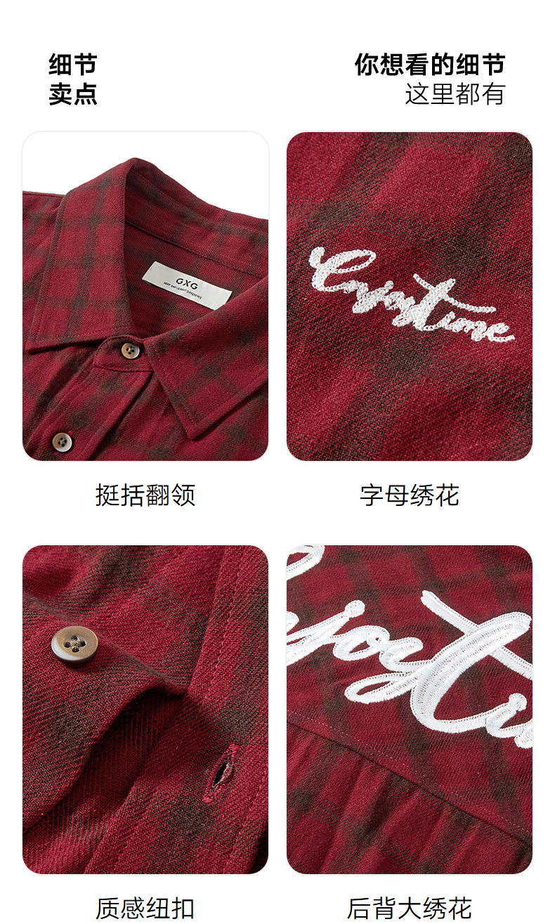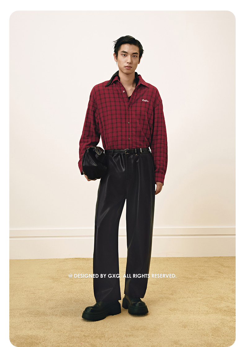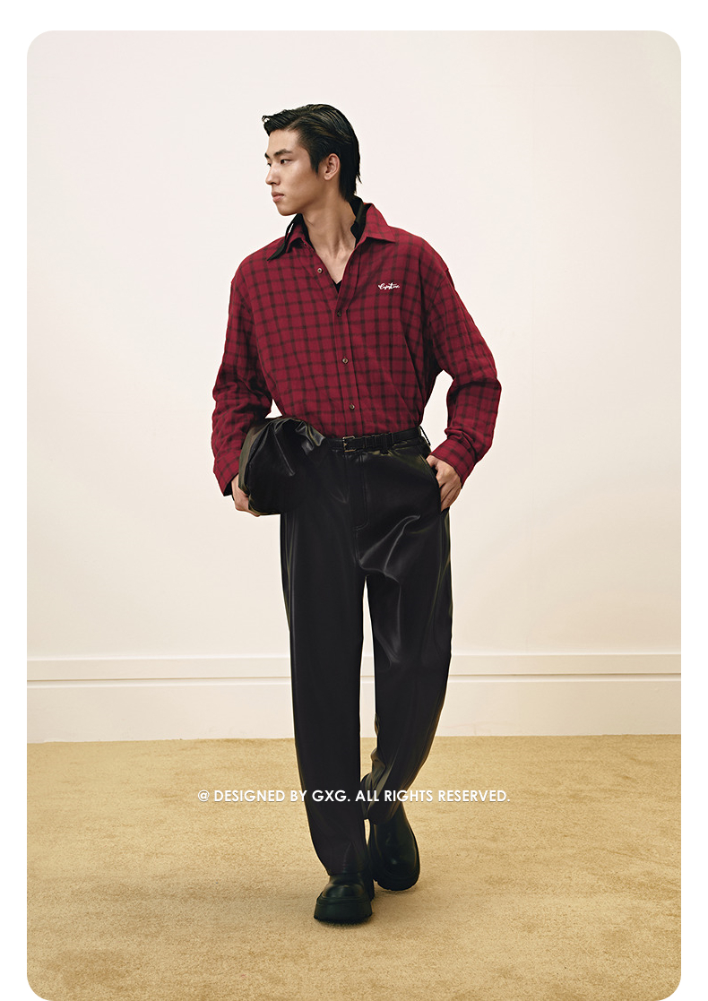 GXG男装 红色格纹休闲时尚长袖衬衫外套新年男士上衣25年春热卖