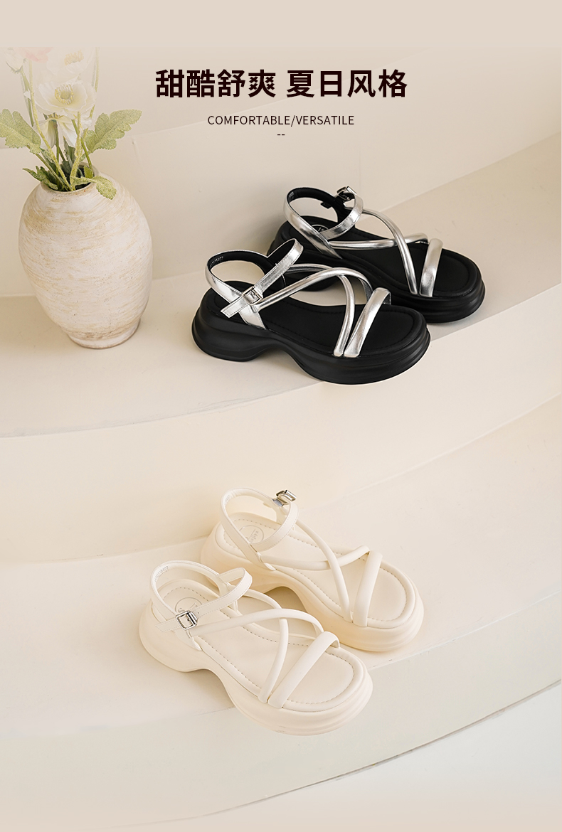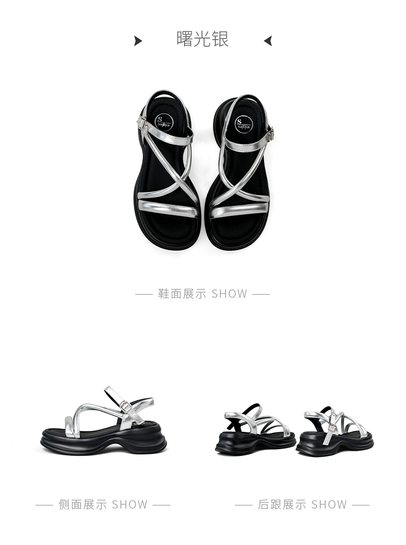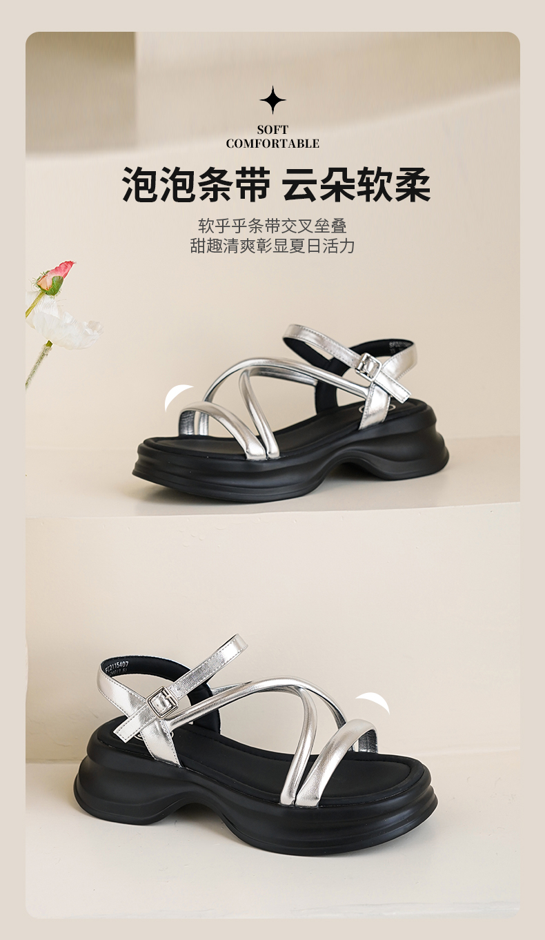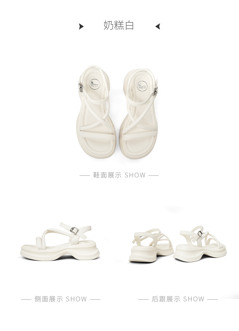 Safiya/索菲娅2025甜酷奶芙·轻便增高百搭露趾厚底松糕罗马凉鞋SFD2115407