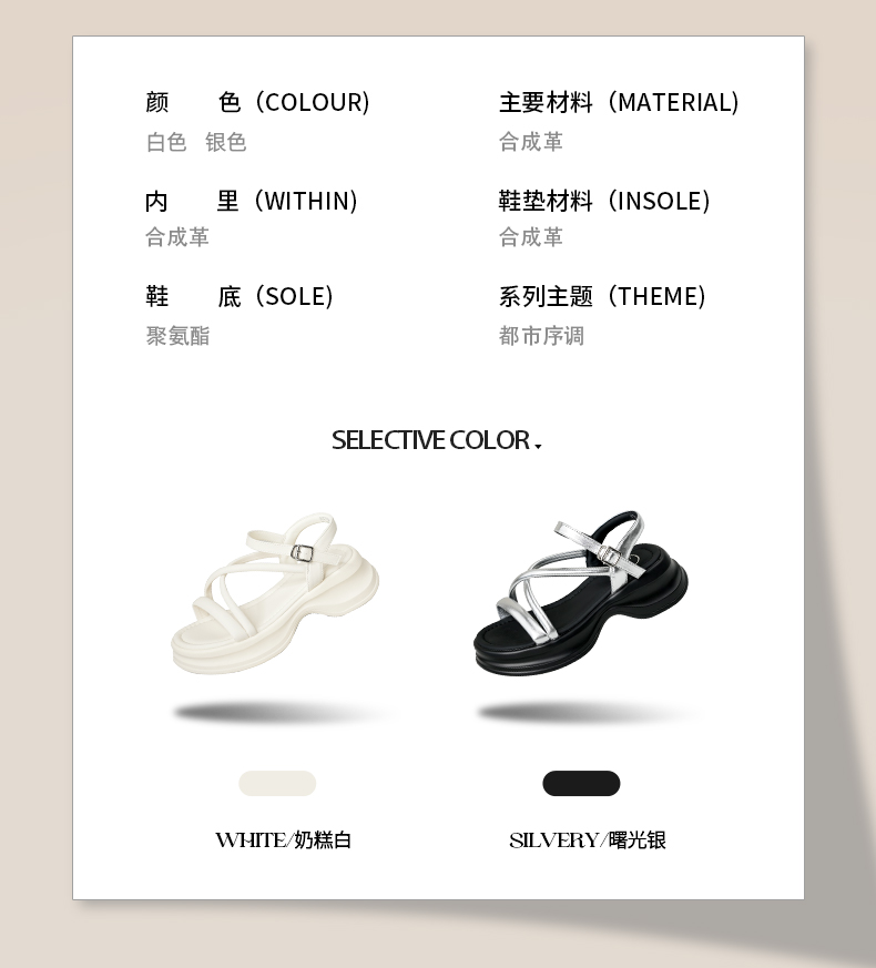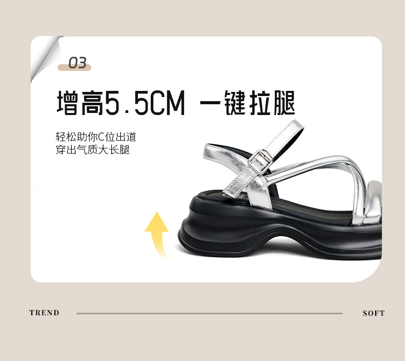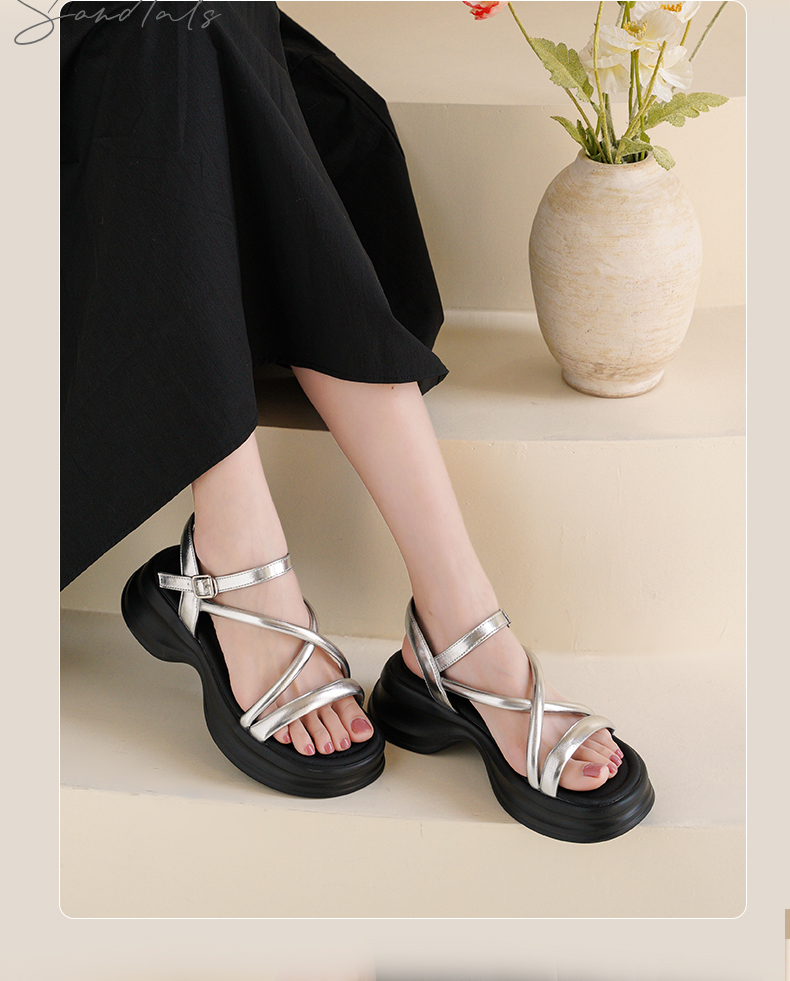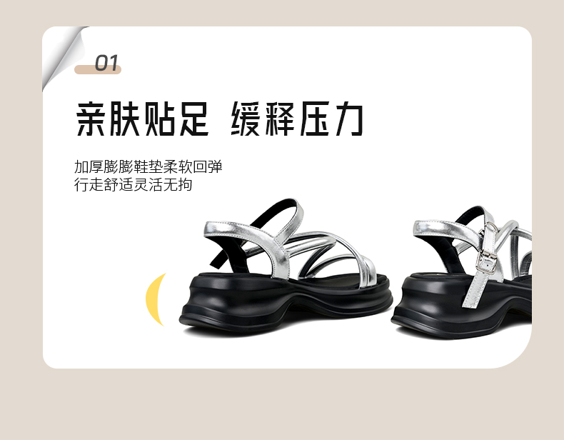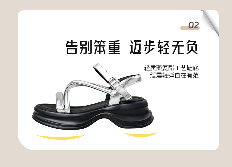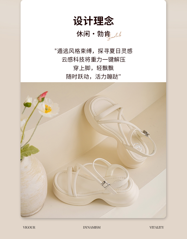 Safiya/索菲娅2025甜酷奶芙·轻便增高百搭露趾厚底松糕罗马凉鞋SFD2115407