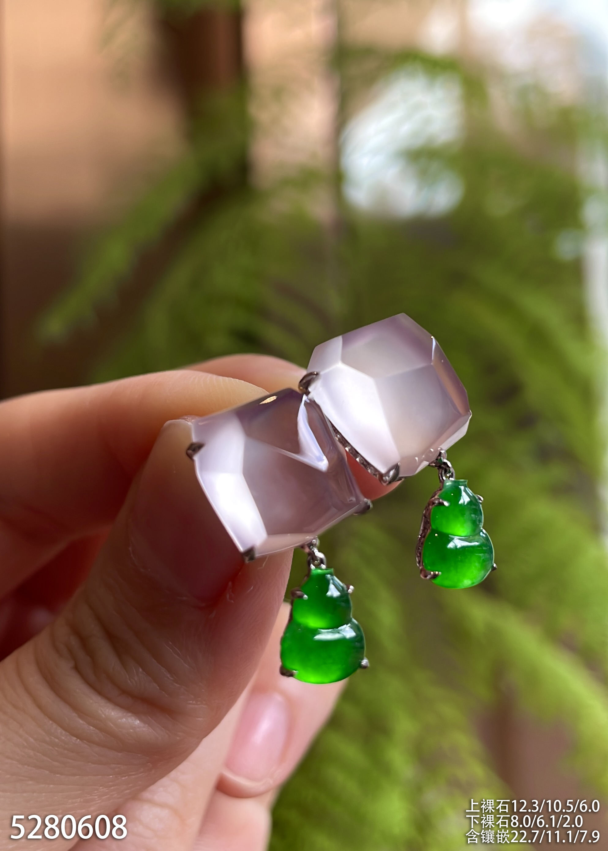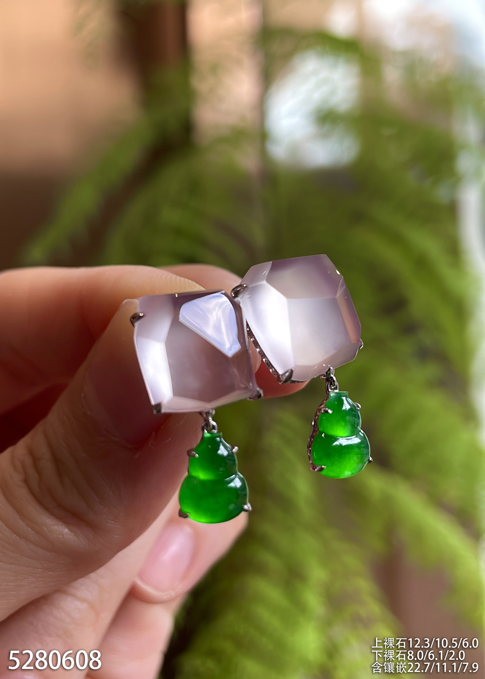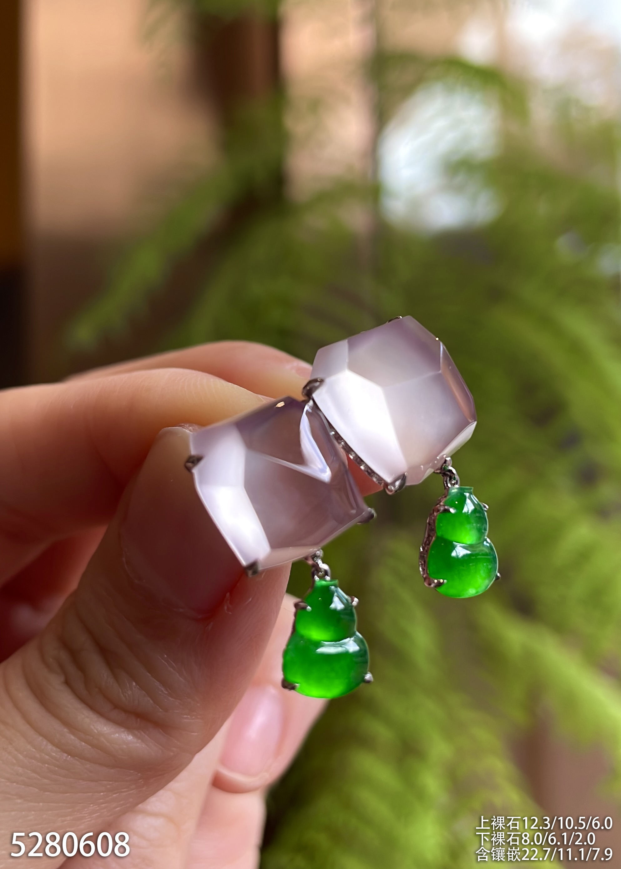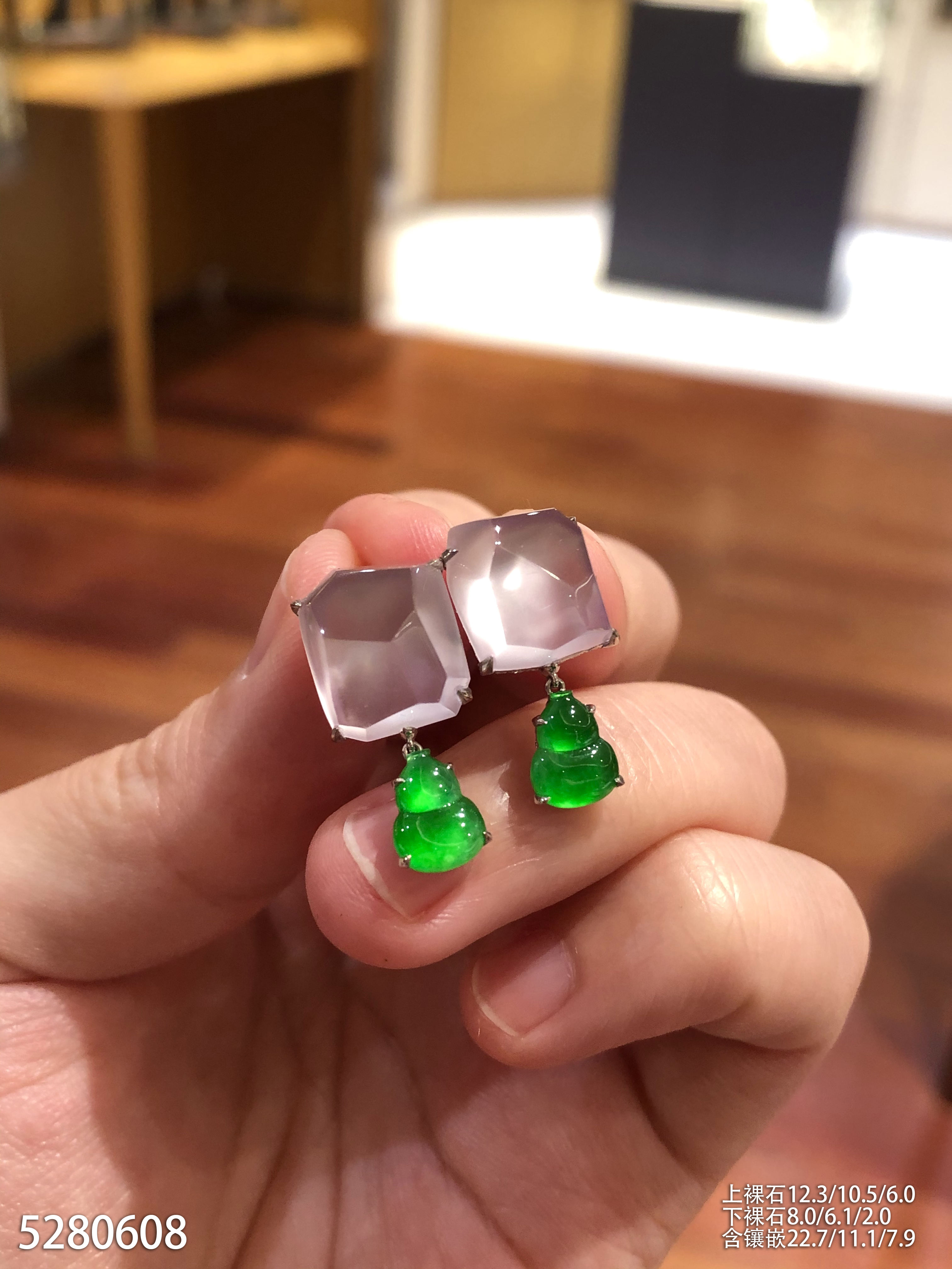 玻璃种粉紫罗兰随形耳坠【5280608】具体价格微信咨询