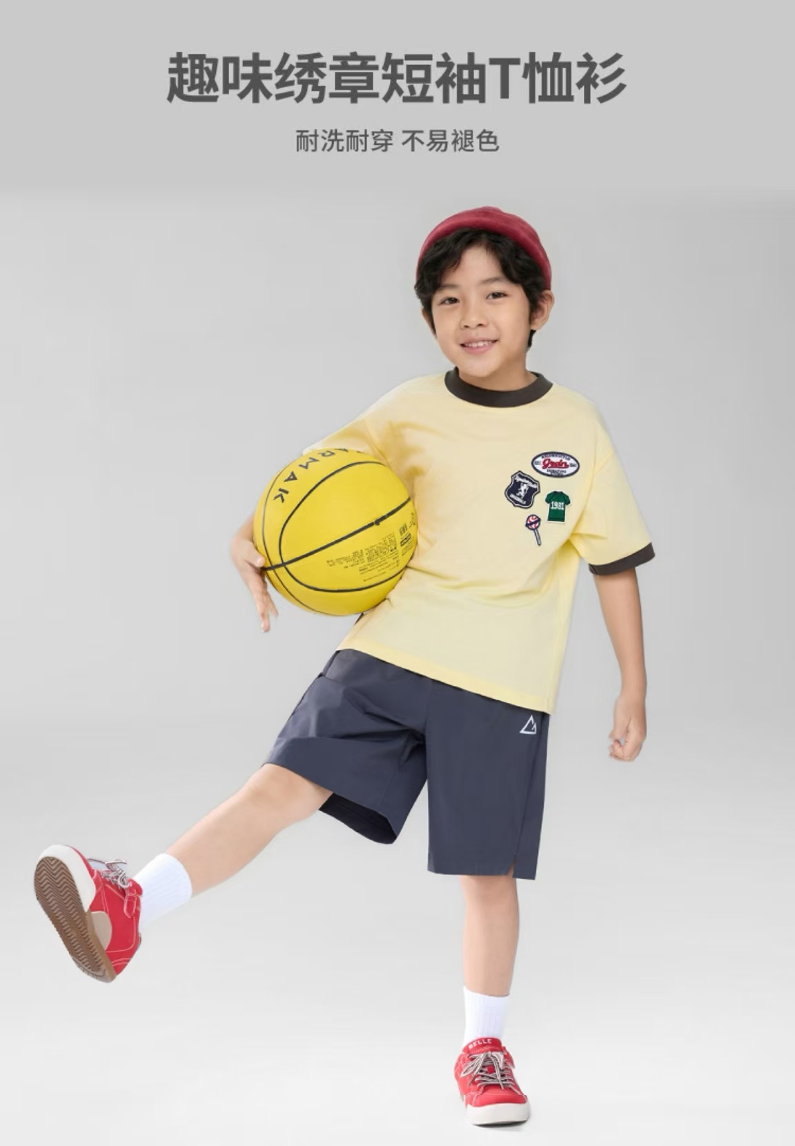 佐丹奴童装26年新款全棉趣味绣章短袖T恤衫03026205