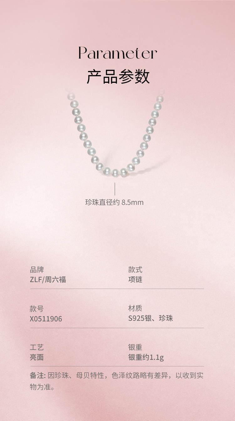 周六福S925银淡水珍珠项链 优雅时尚复古颈饰女生礼物官方旗舰店