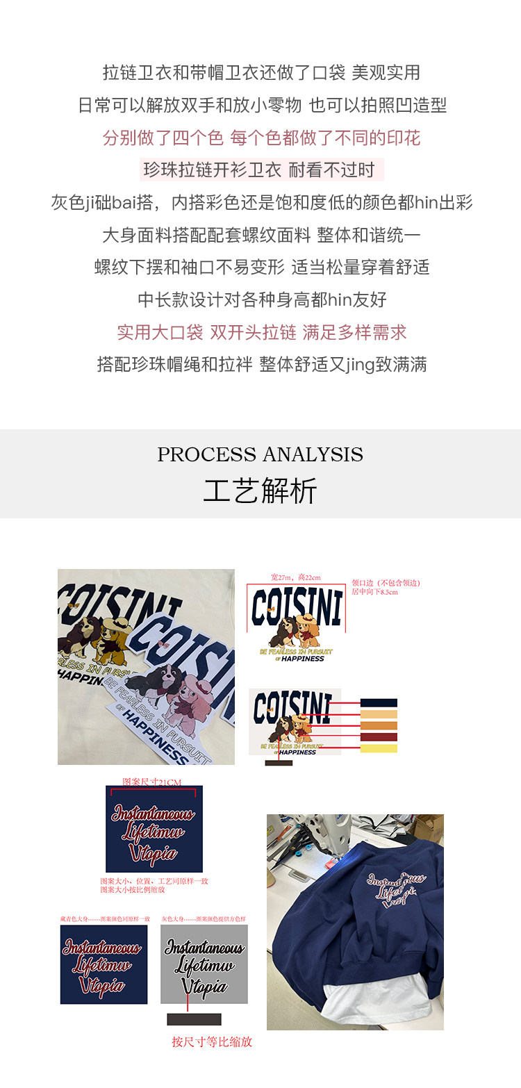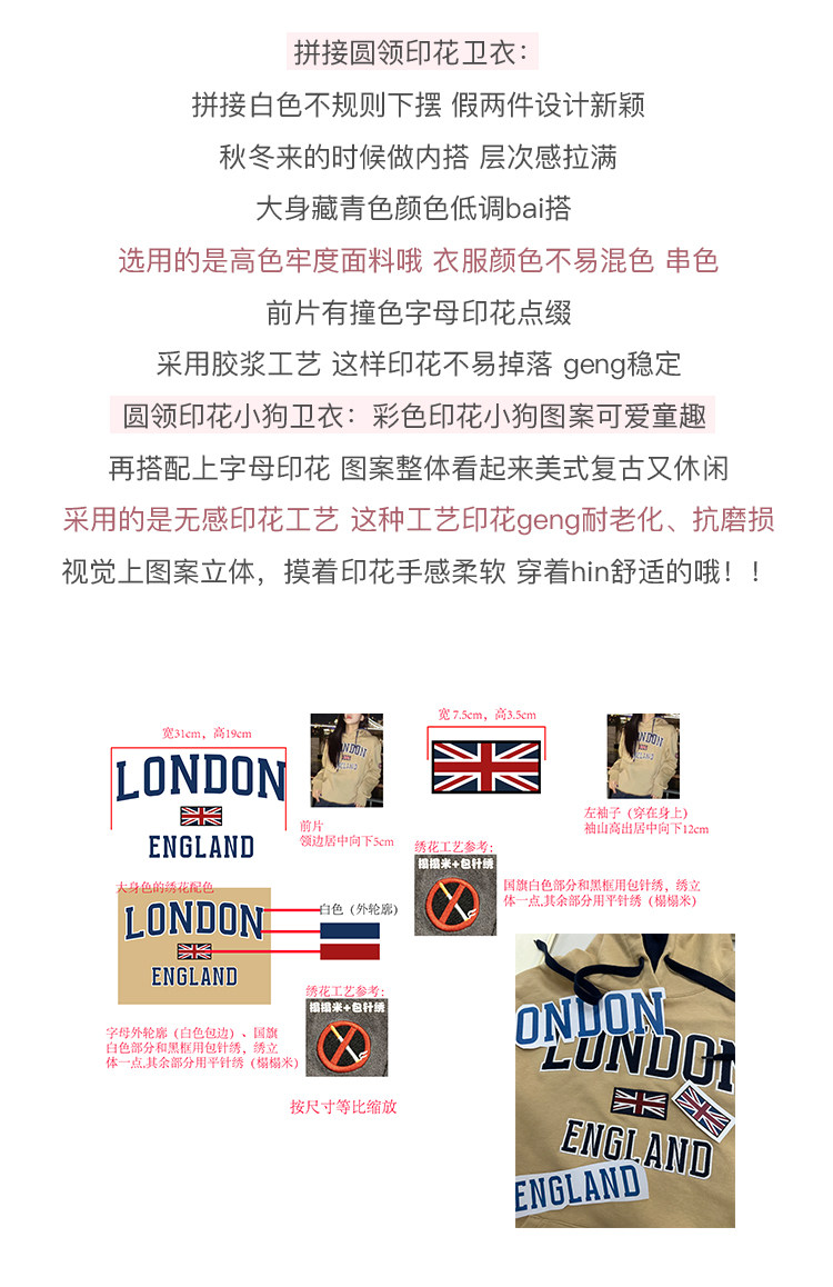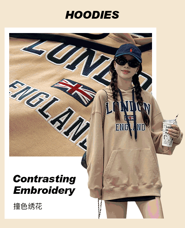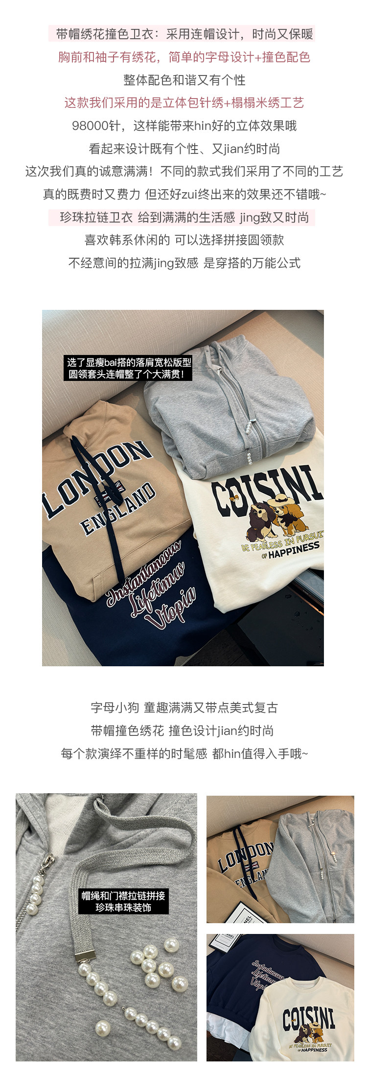 EKOOL衣库 四色印花连帽卫衣女秋季宽松显瘦上衣