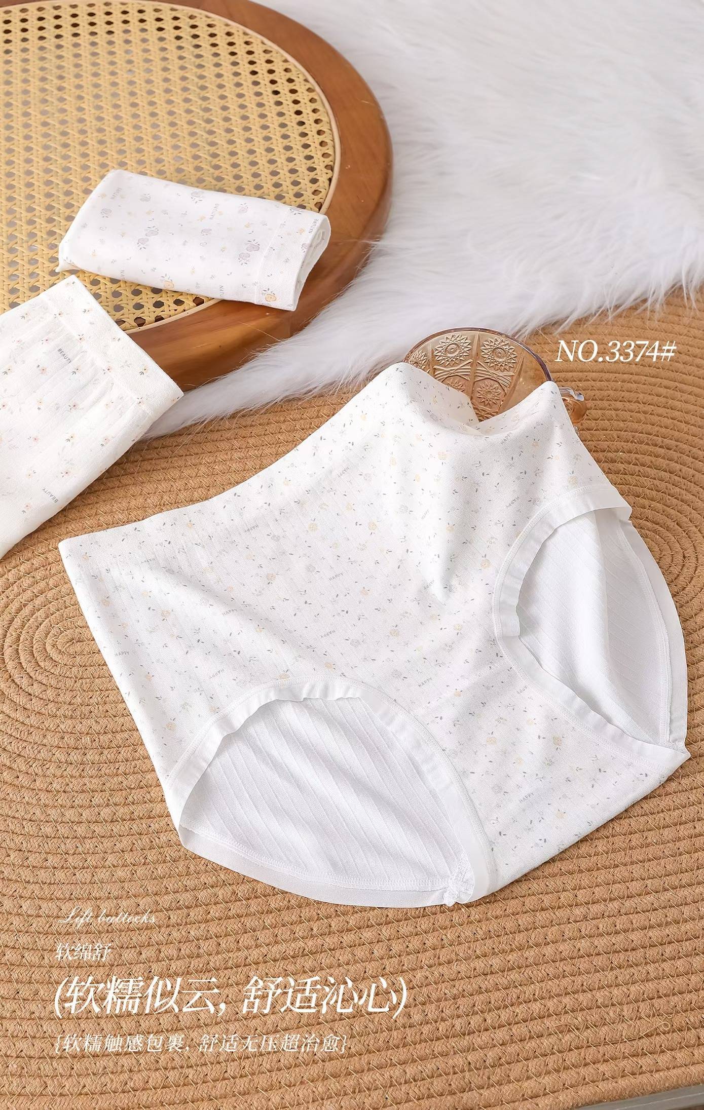 新款女士加肥加大印花无缝内裤裸氨棉舒适透气三角裤小清新丰满裤3374