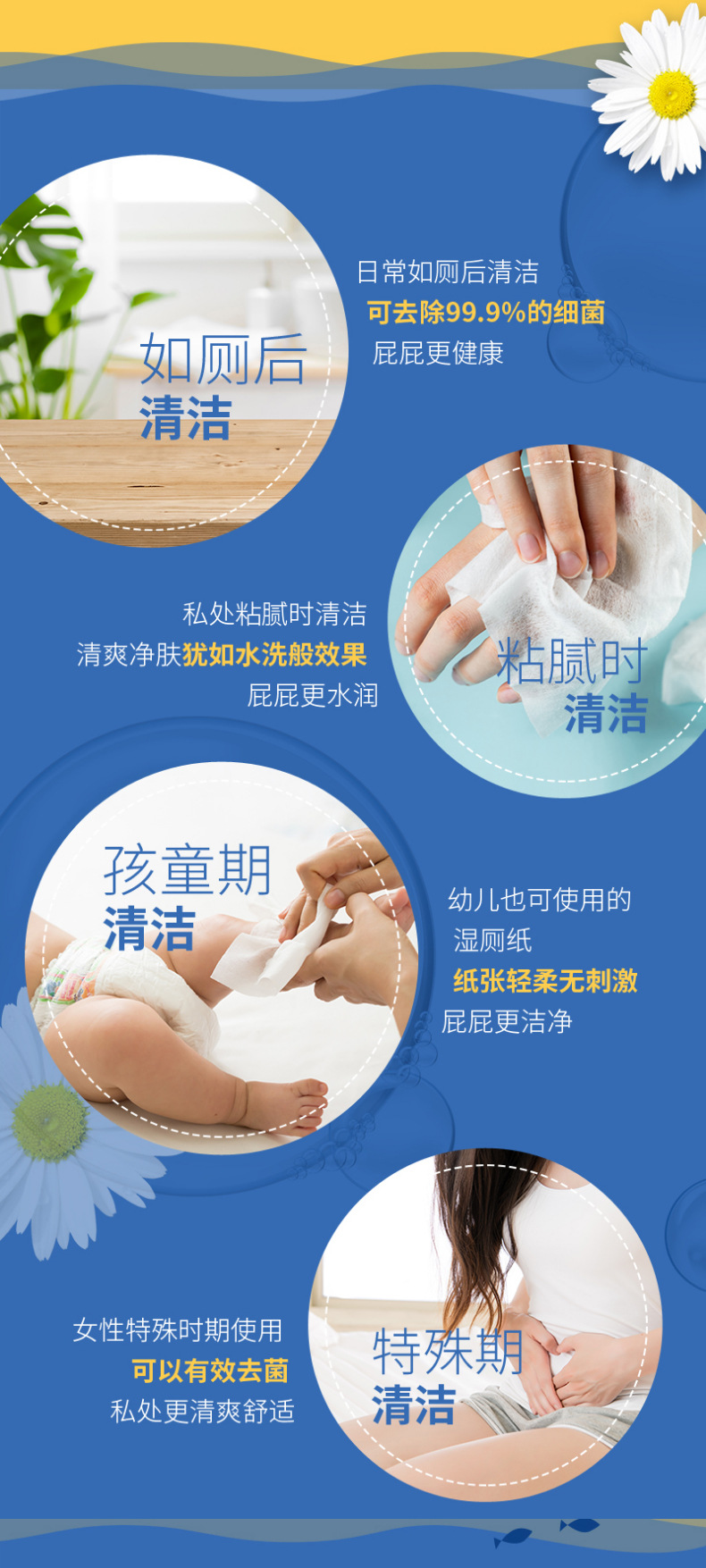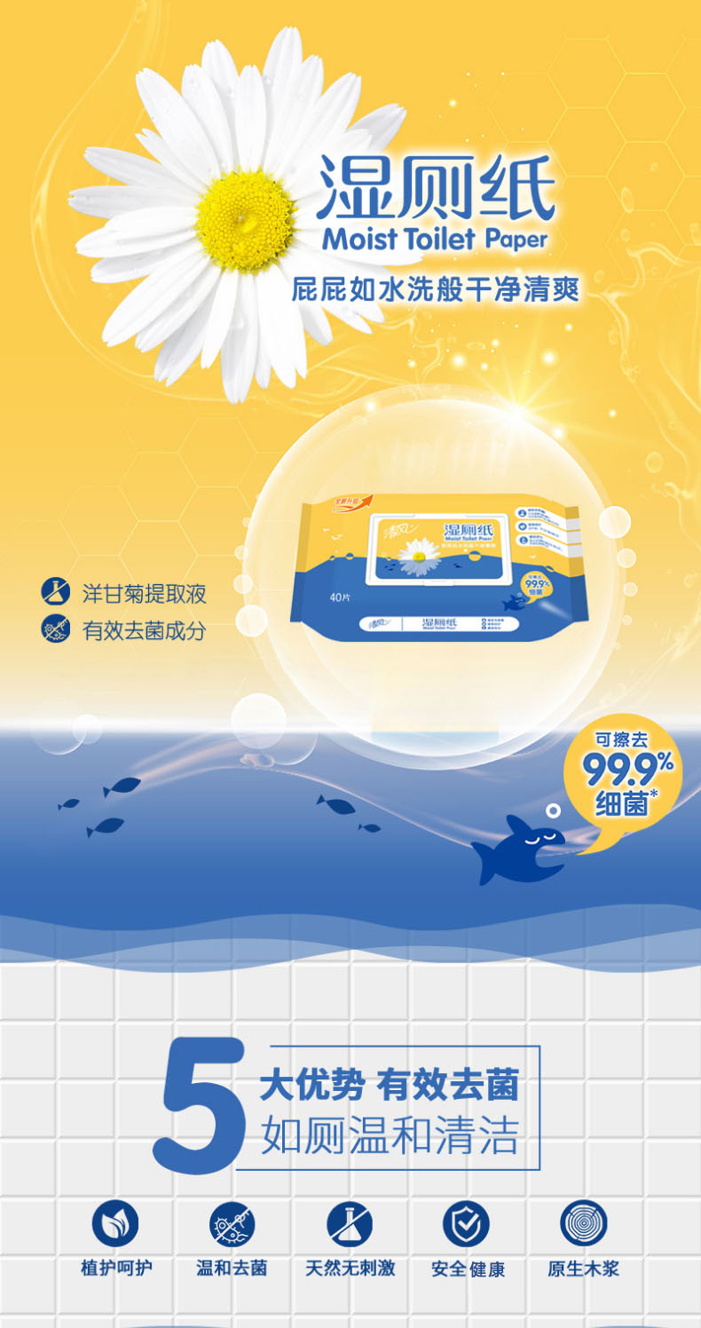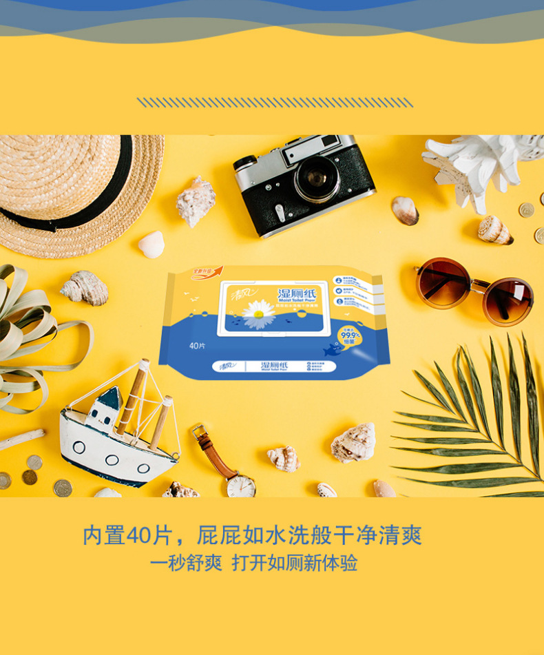 清风 湿厕纸 4包 抽取式 纸巾 富含洋甘菊成份 天然 无刺激 家庭实惠装 新老包装随机发货 包邮