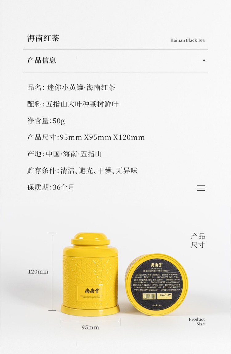 自营(尚南堂)-海南红茶蜜香型一级红茶海南特产茶叶伴手礼 迷你小黄罐