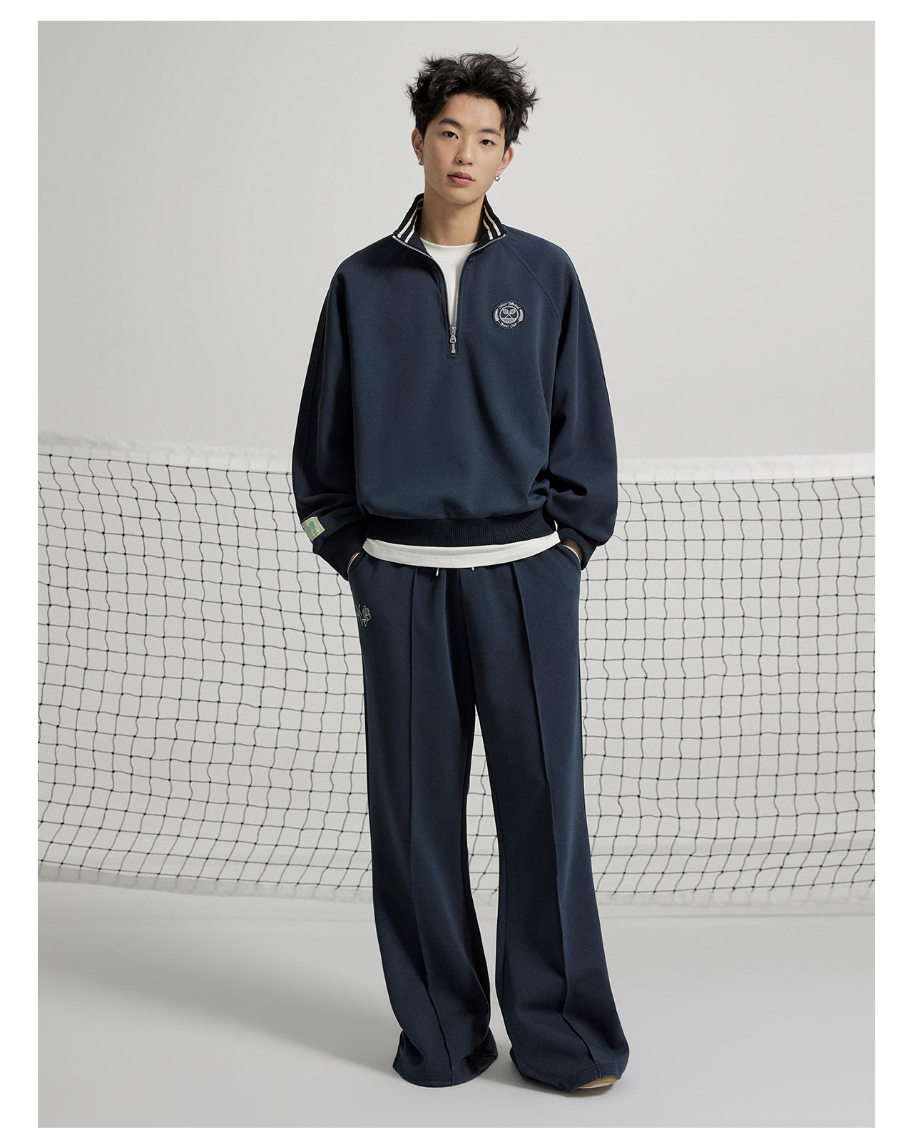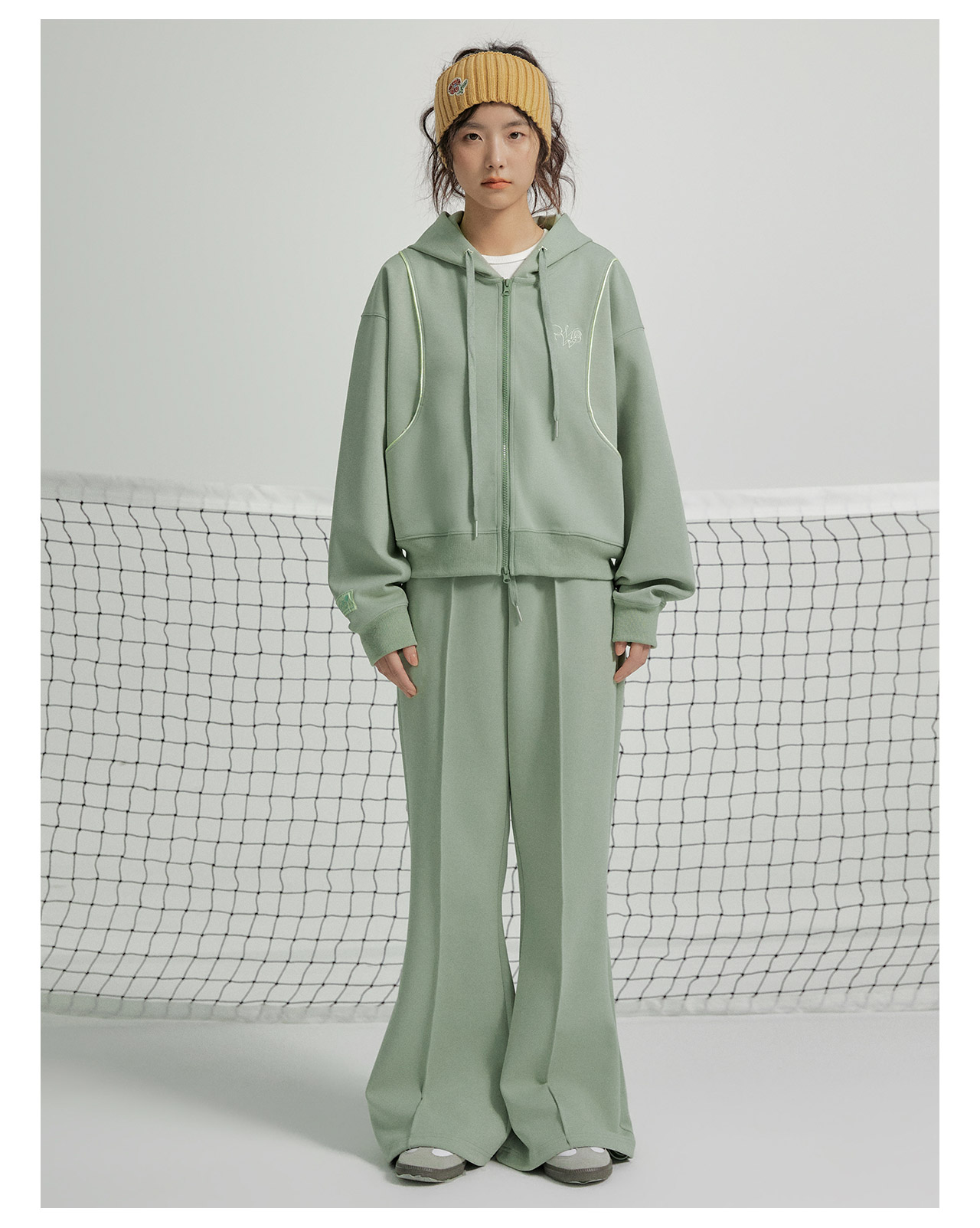 mostwantedlab彩虹/M2412015/休闲运动解构撞色包边喇叭裤灰色卫裤男女