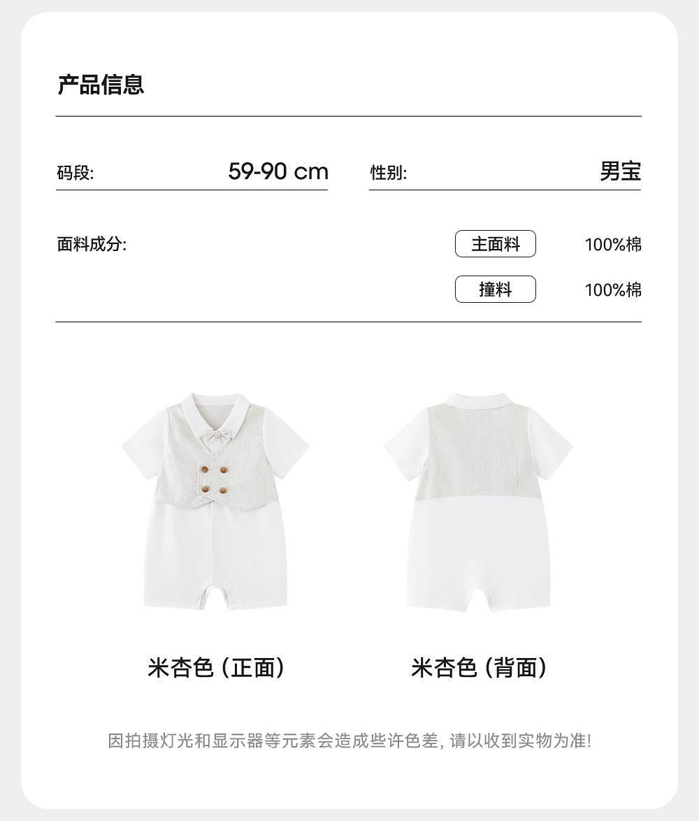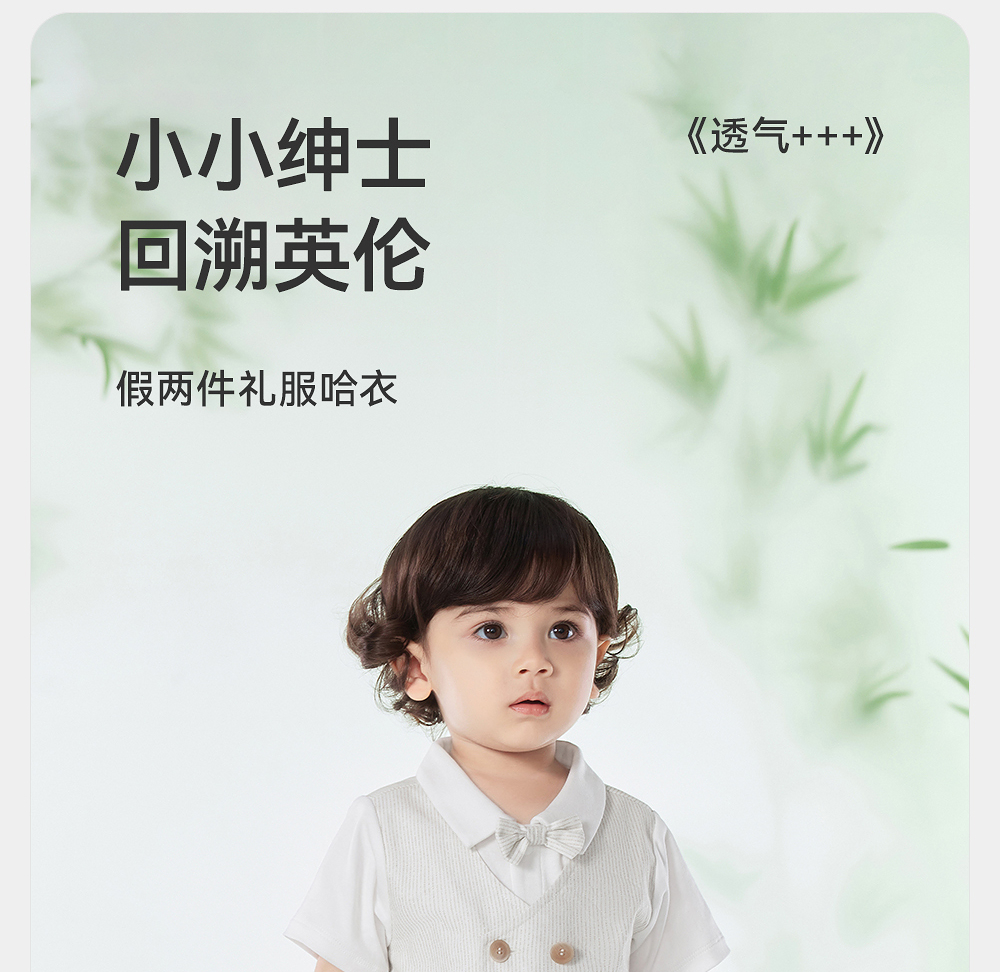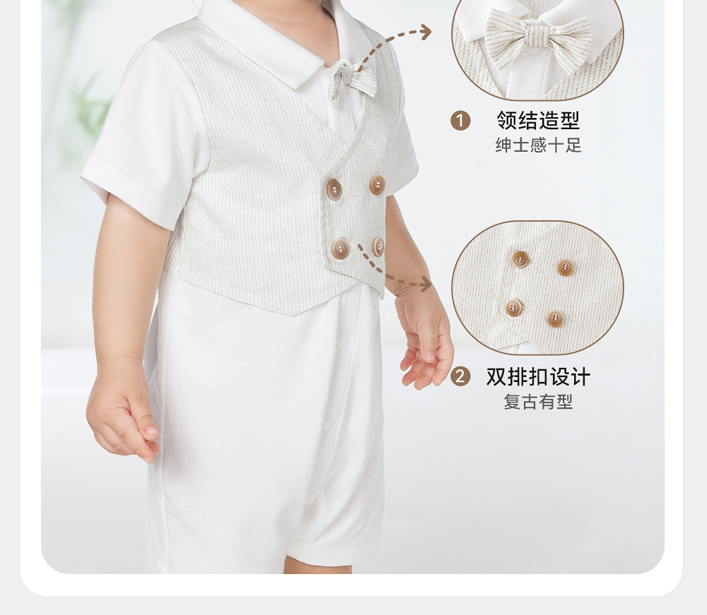 英氏婴儿衣服夏季透气纯棉男宝连体衣短袖假两件西服YRHBJ2R065A