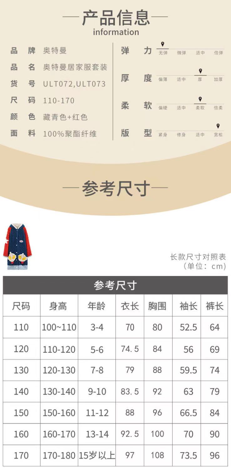 奥特曼睡衣家居服秋冬保暖儿童套装XHR
