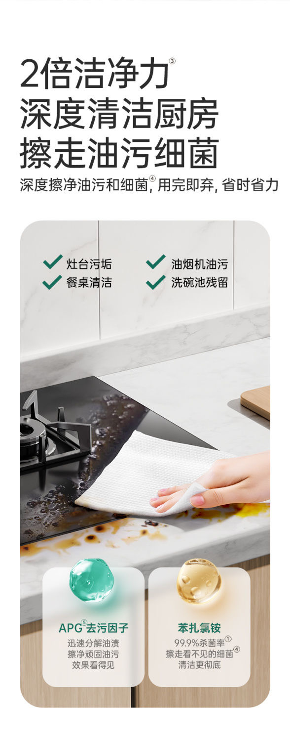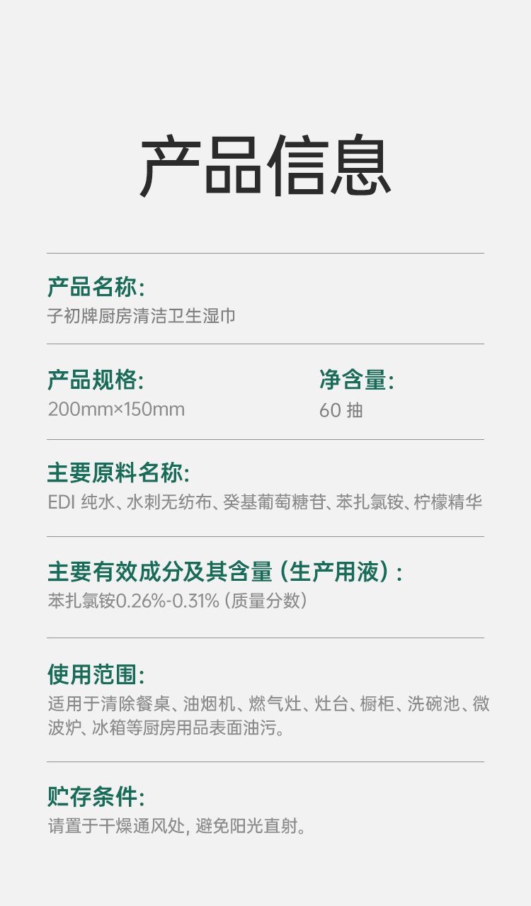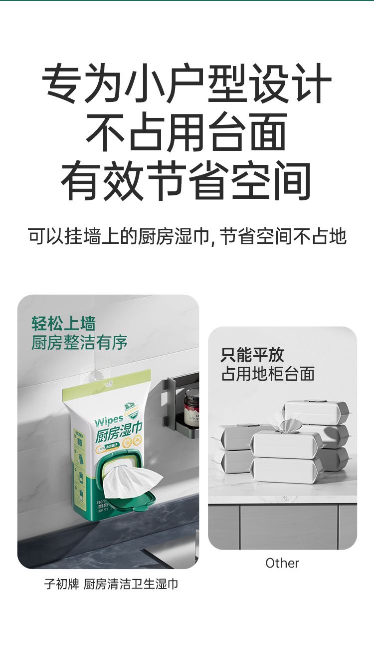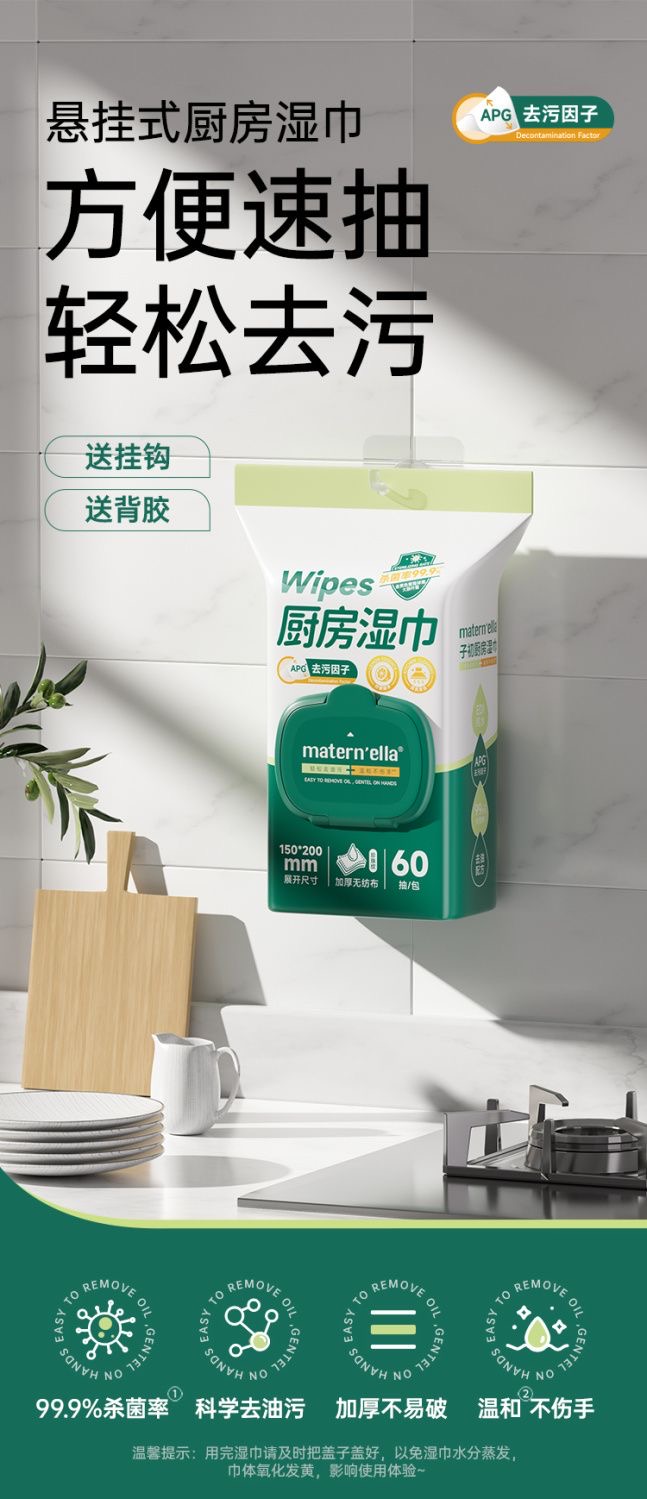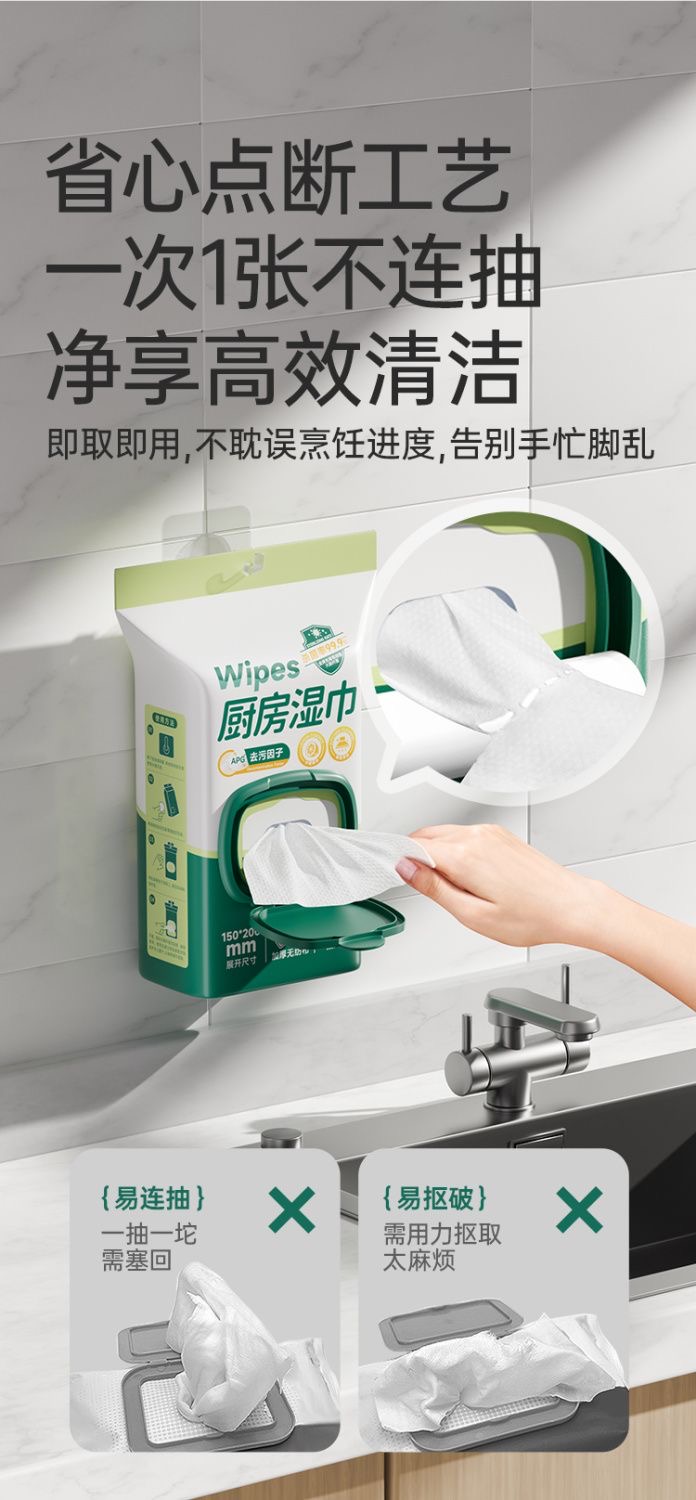 子初牌厨房清洁卫生湿巾 200*150mm 60抽/包*6包(送背胶+挂钩)