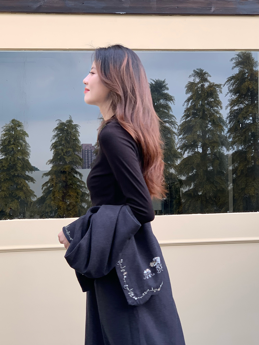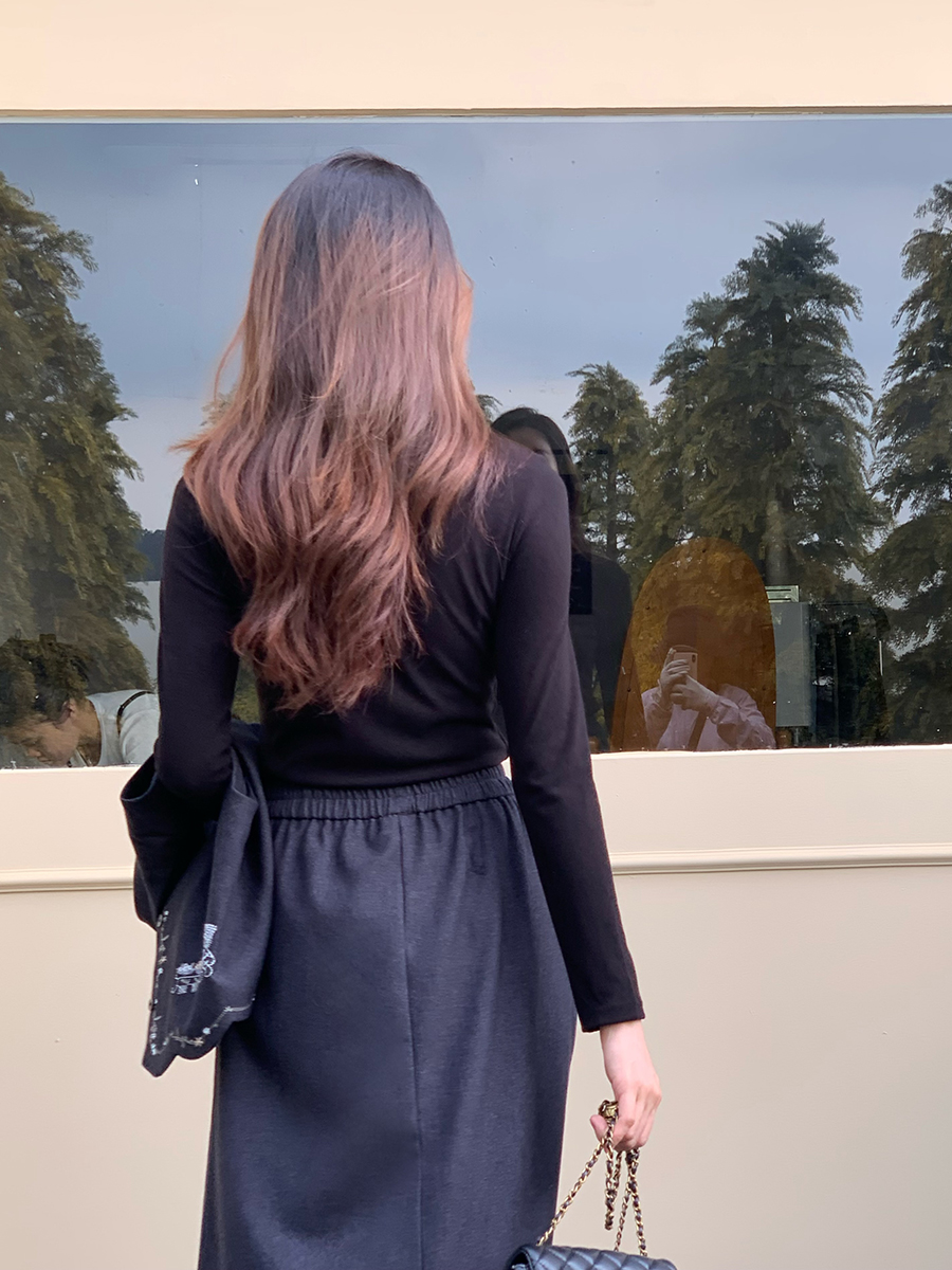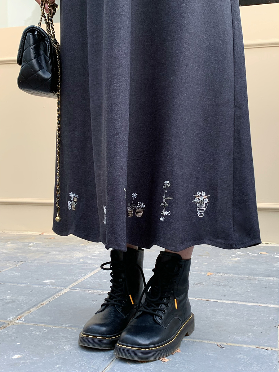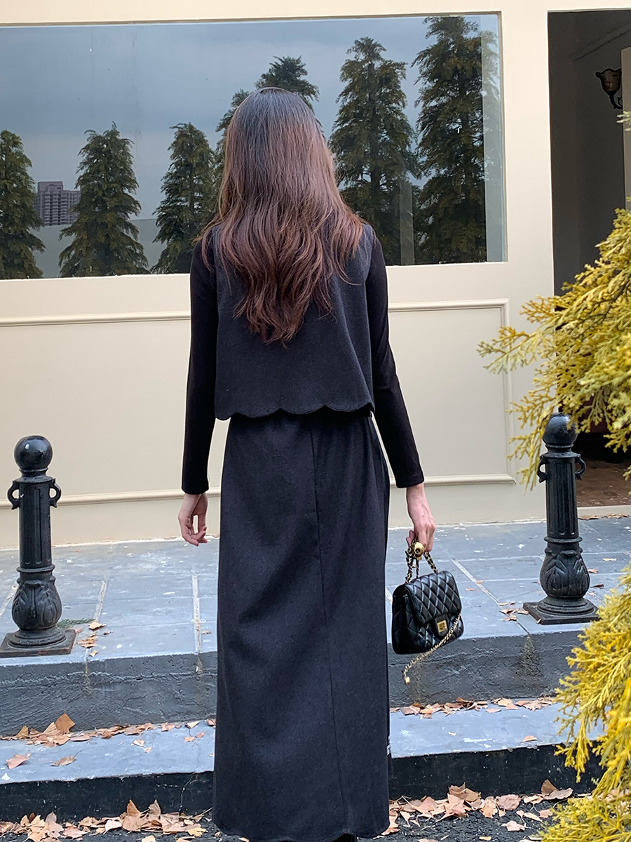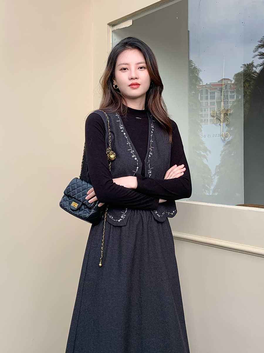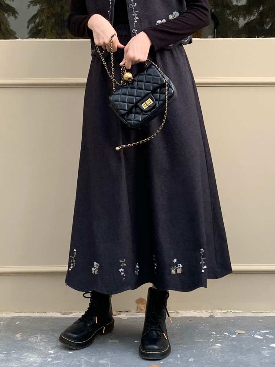【百图lulu定制】【花蔓套装】【一套299元】花朵刺绣 波浪边马甲 高弹T长袖T恤 A字摆半裙
