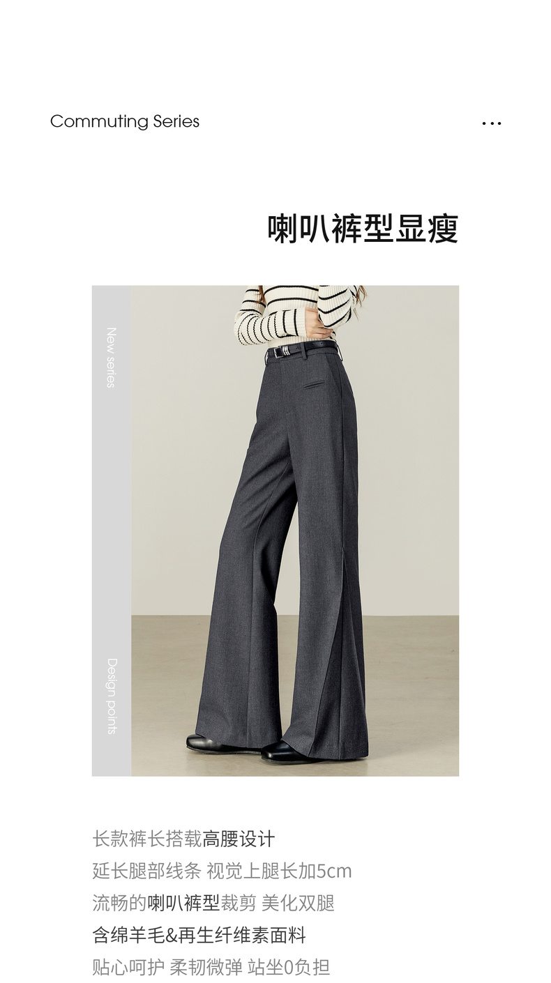 【内购】【含绵羊毛】都市通勤高腰立体中缝线显瘦喇叭长裤-153KH2111