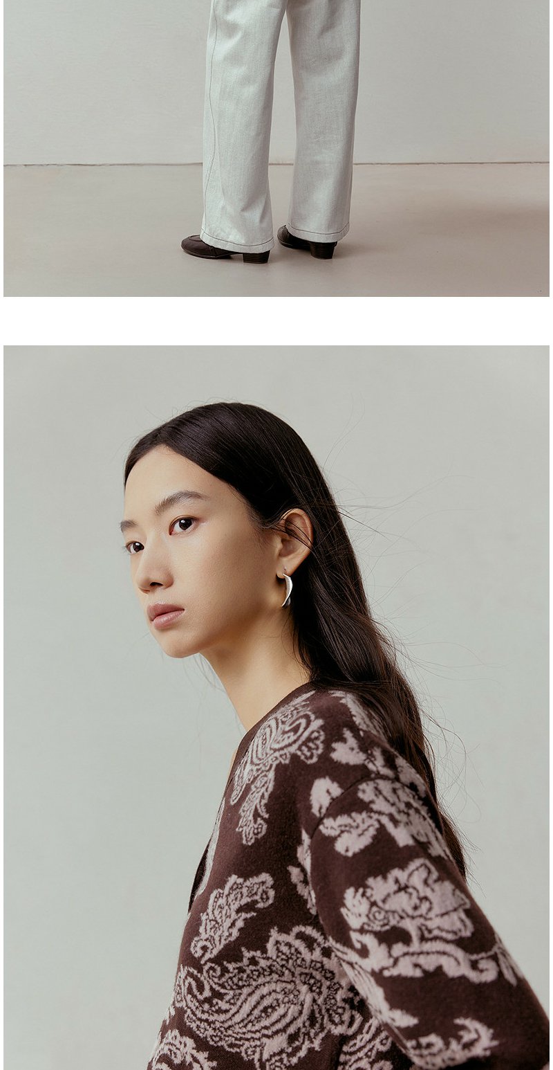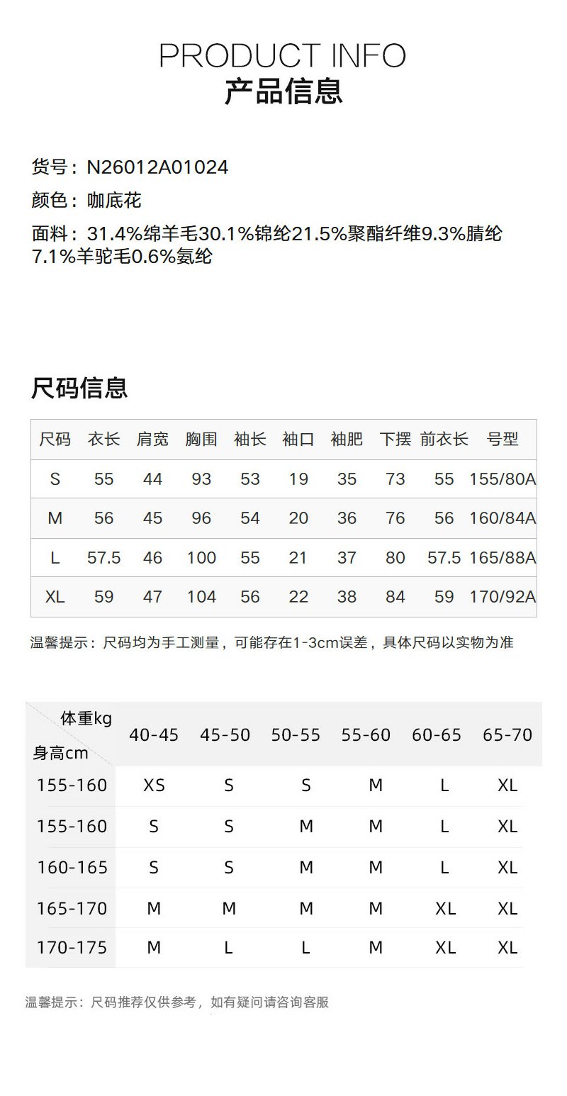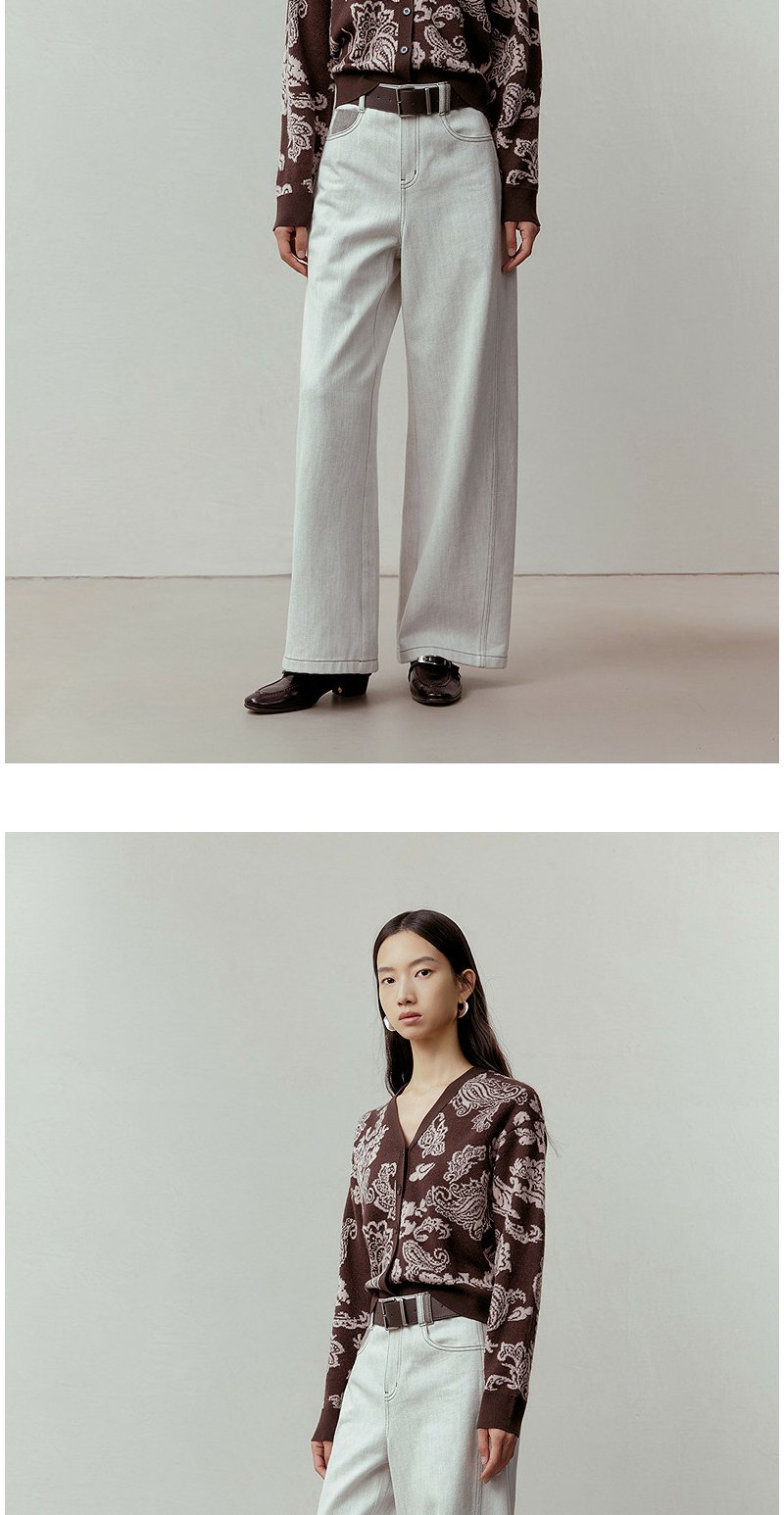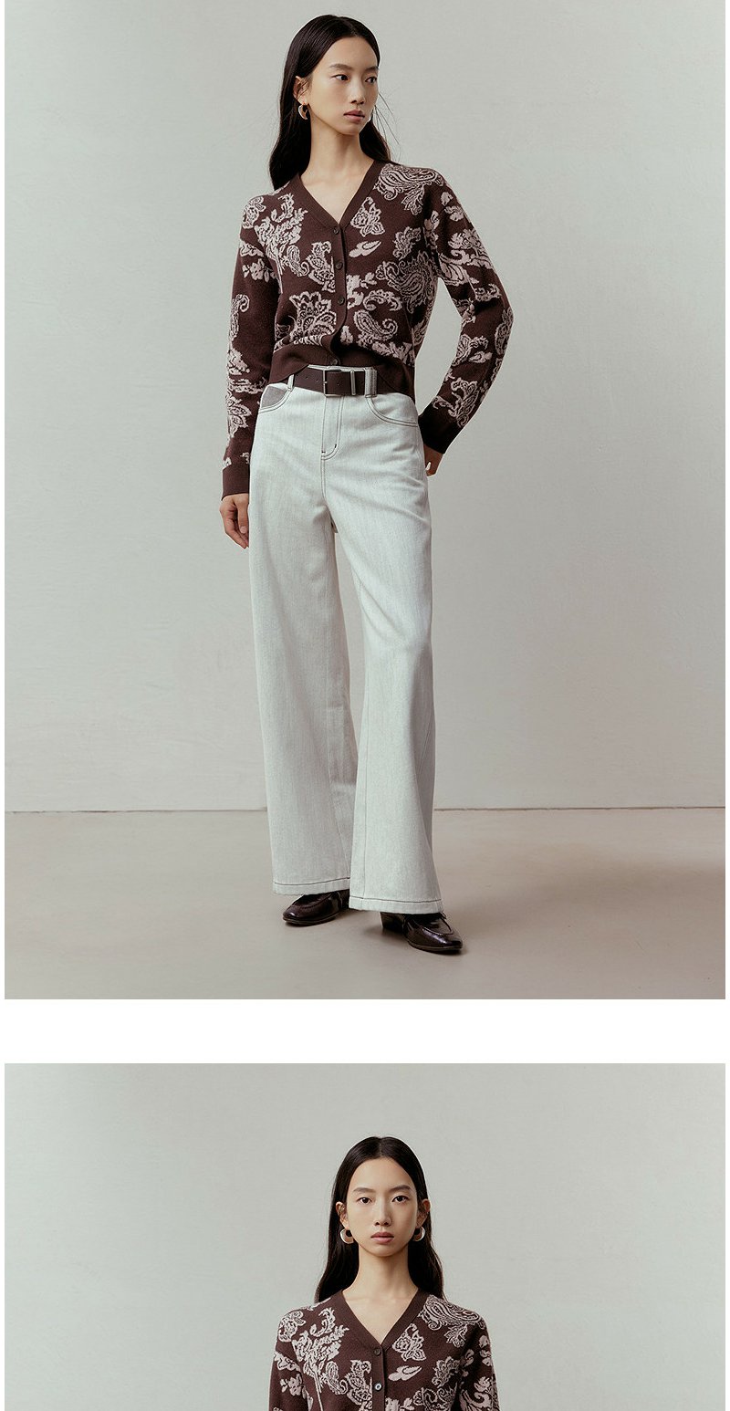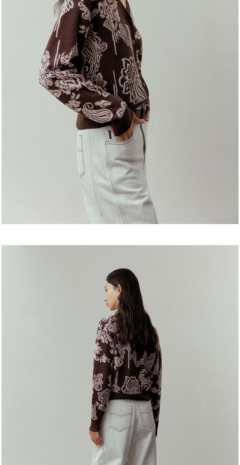 NEELLY纳俪商场同款春季新款复古V领花纹针织开衫女慵懒休闲上衣N26012A01024