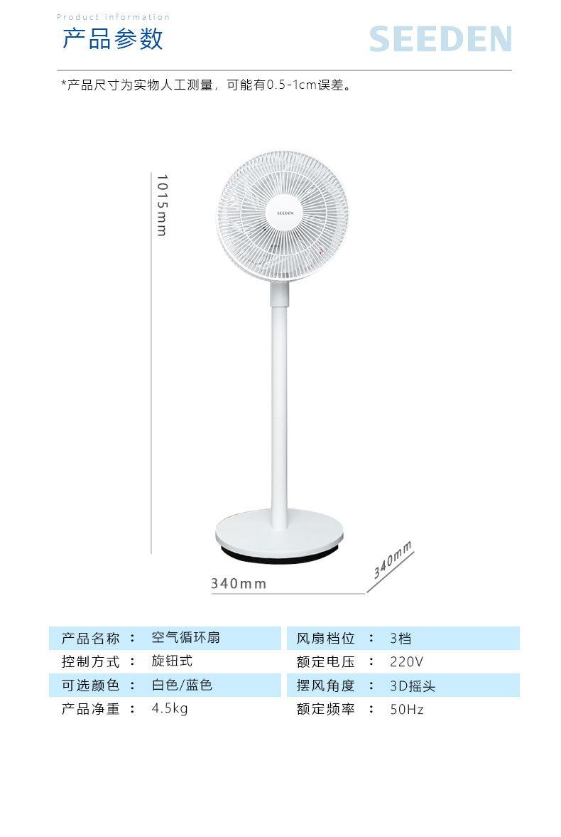 SEEDEN/西点 台地两用寸12寸交流立式空气循环扇KF-2988