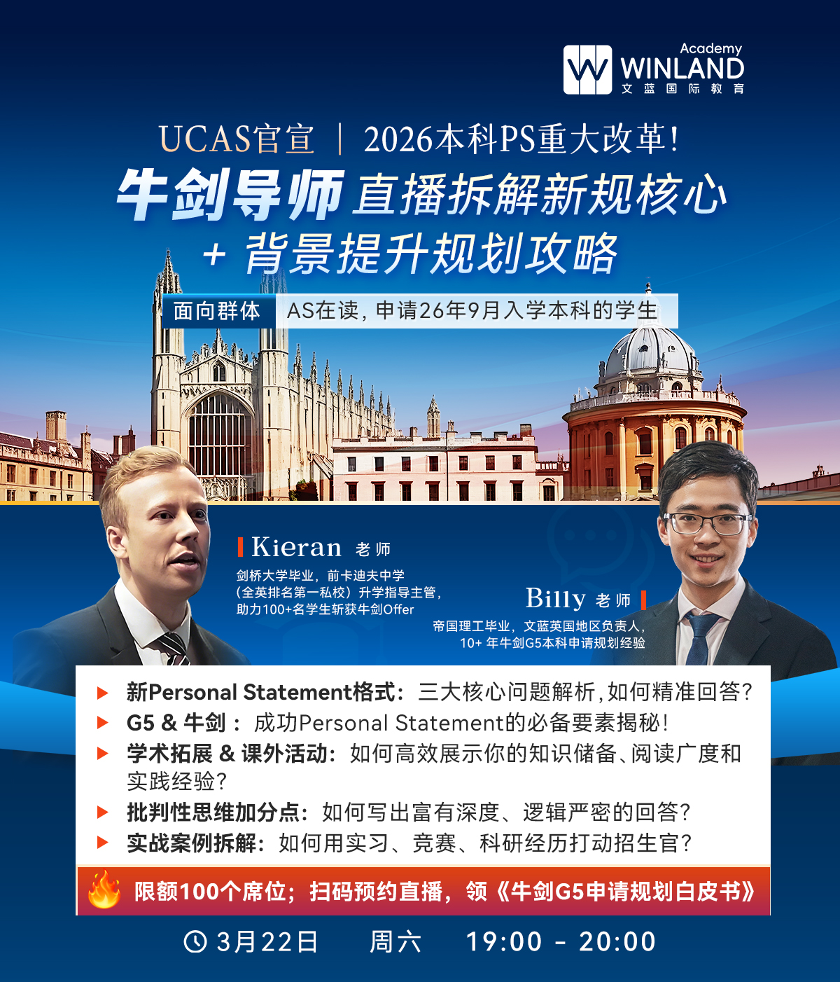 【3.22】UCAS官宣2026本科PS重大改革!牛剑导师直播拆解新规核心+背景提升规划攻略