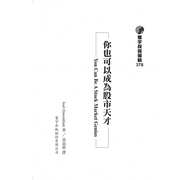 预售 【中商原版】你也可以成为股市天才 港台原版 Joel Greenblatt 寰宇出版 股票投资