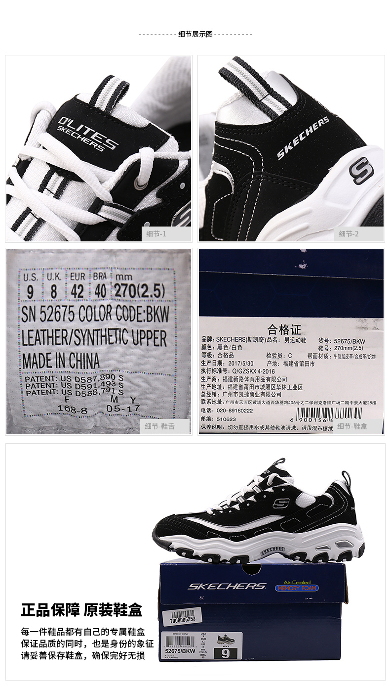 斯凯奇 SKECHERS 经典情侣鞋男子运动鞋 时尚老爹鞋 熊猫鞋 52675