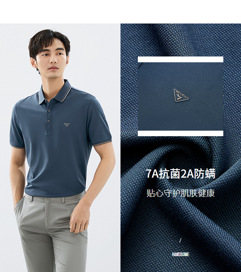 【7A抗菌2A防螨】柒牌polo衫男短袖2025夏季新品商务百搭翻领T恤128T71500