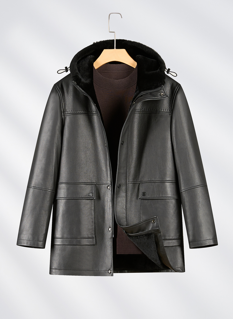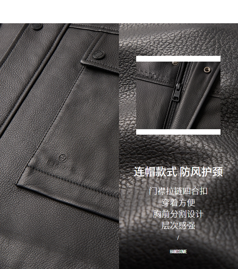 【绵羊皮】柒牌男装真皮皮衣男秋冬新款商务休闲帽领加厚保暖外套 127J70010