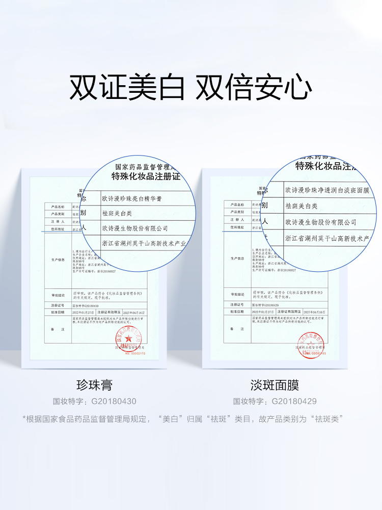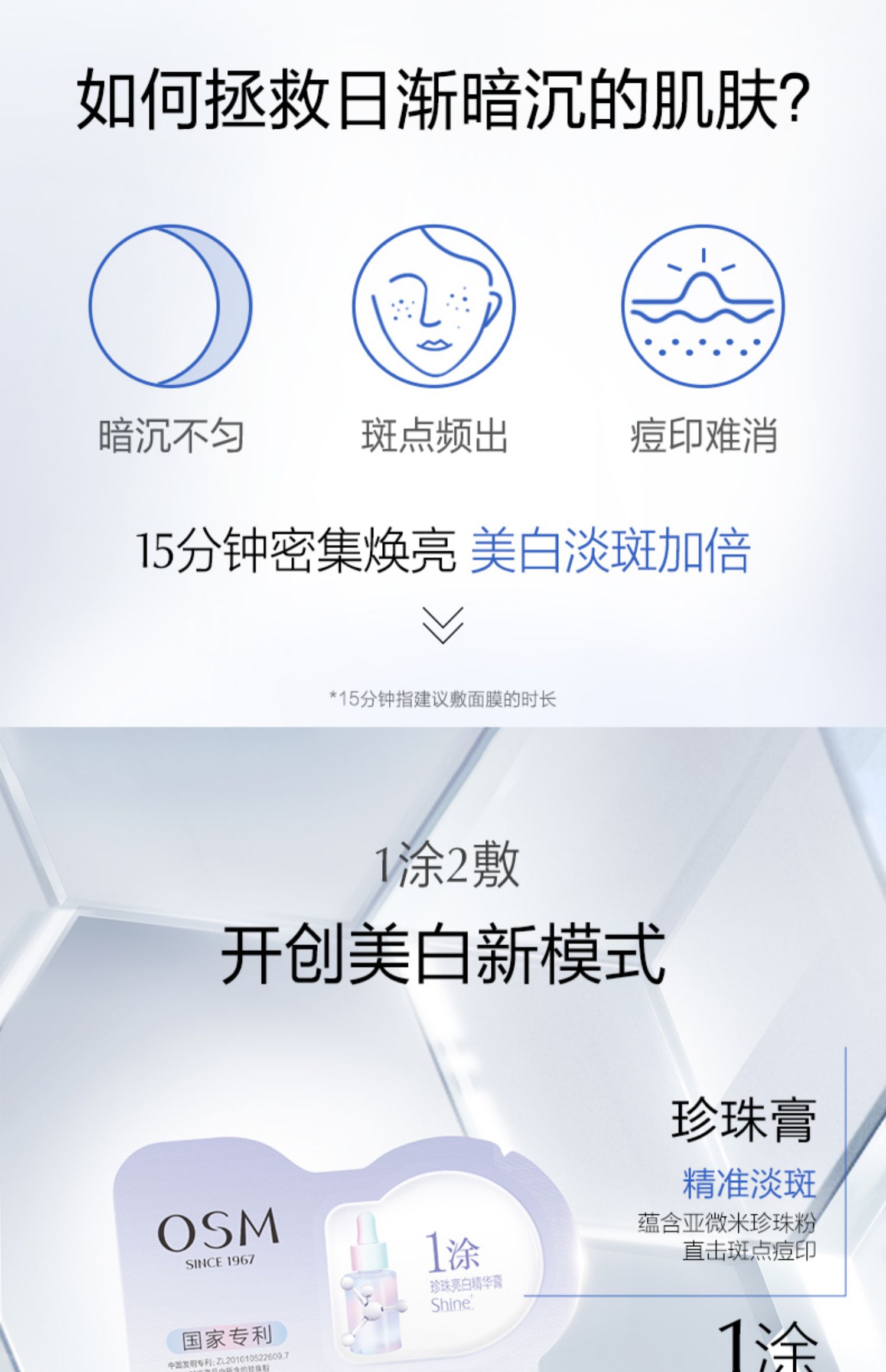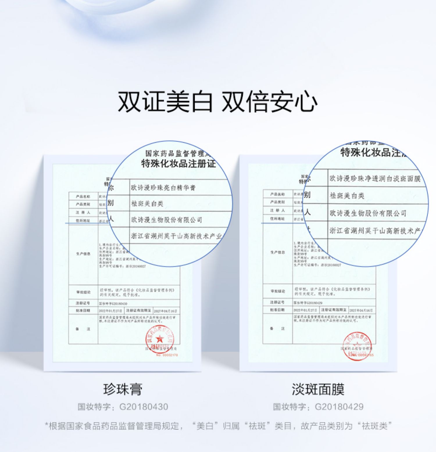 到手4盒-欧诗漫面膜补水保湿烟酰胺提亮肤色5片/盒,有美白特证220501