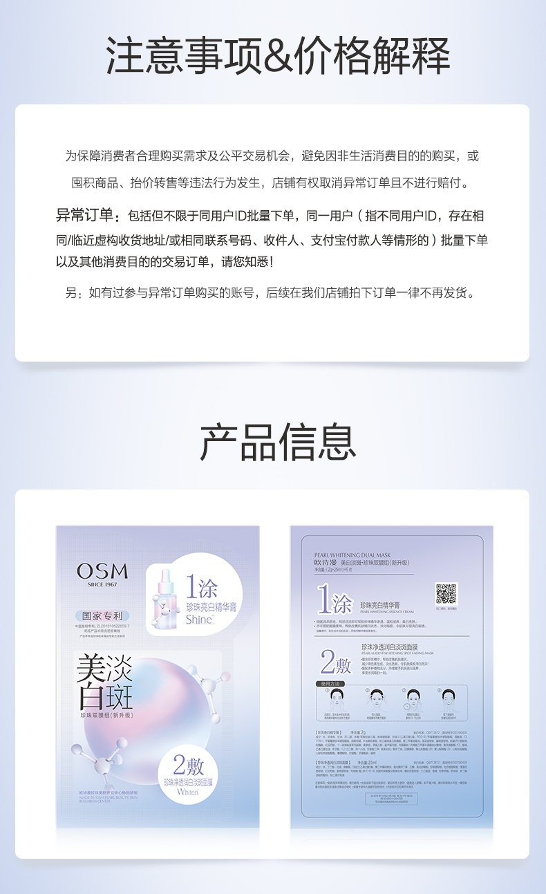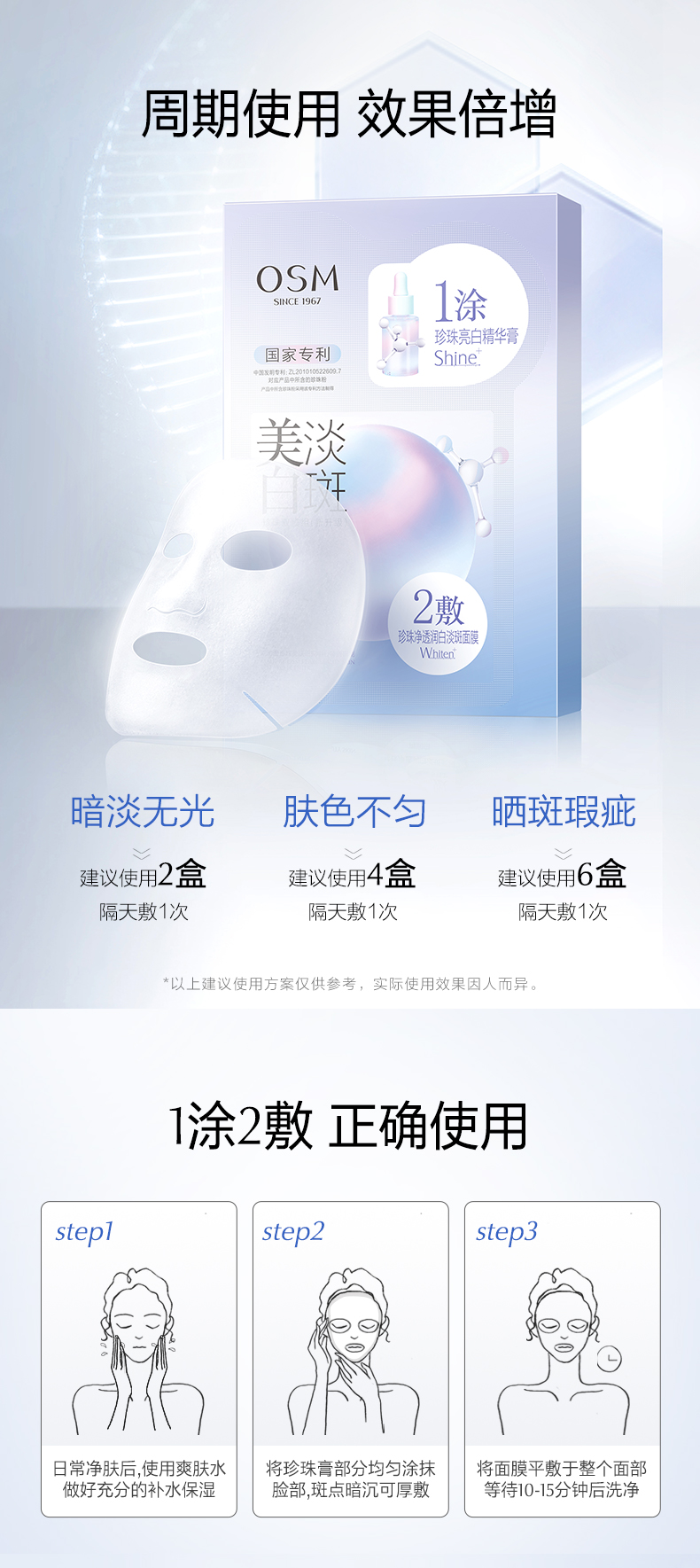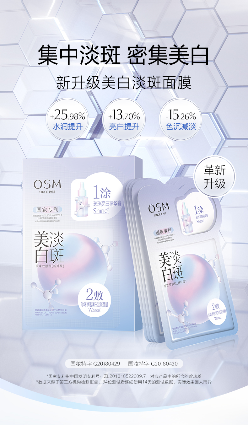 到手4盒-欧诗漫面膜补水保湿烟酰胺提亮肤色5片/盒,有美白特证220501