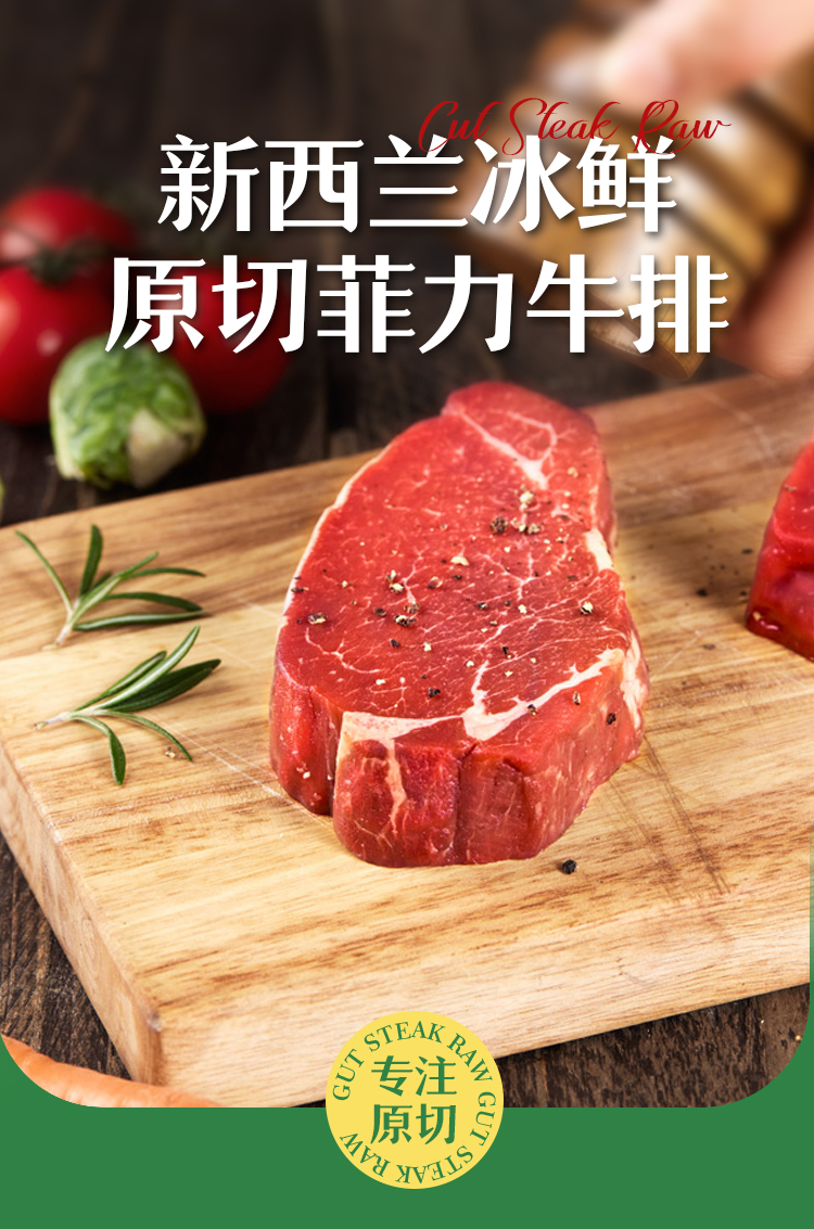 【锁鲜装】新西兰冰鲜原切菲力牛排200g/盒