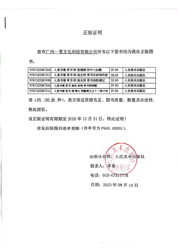 人美书谱 草书 明 祝允明 草书乐府诗四首【现货包邮】RM0058