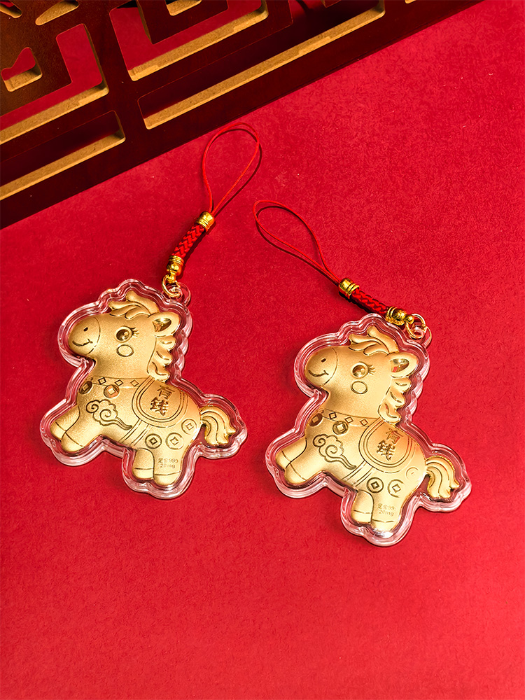 新年开运马上有钱大号吊坠钥匙包包挂饰 足金999马年限定 财运亨通 财源滚滚
