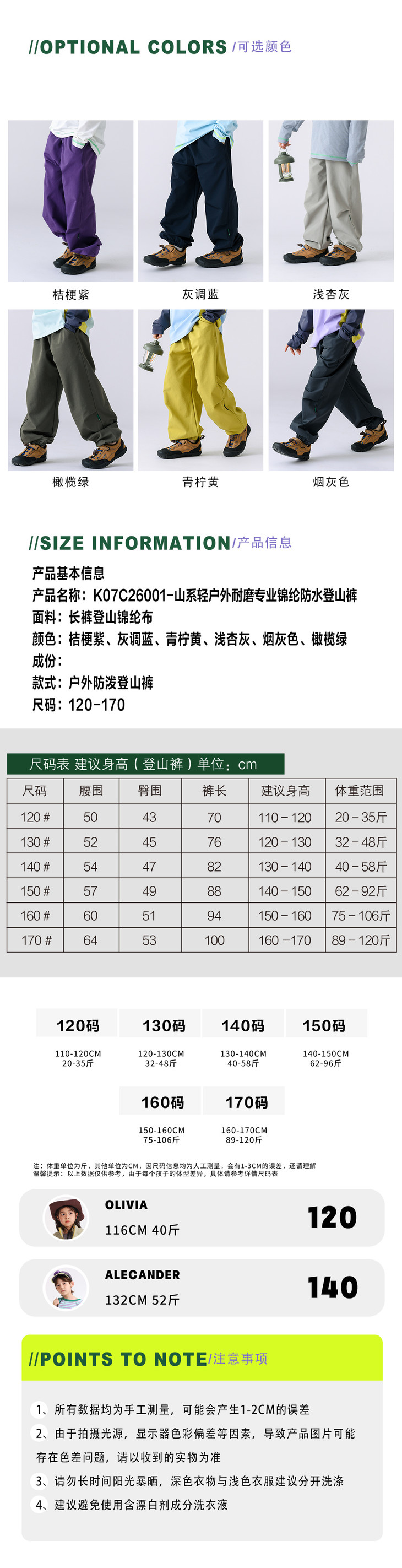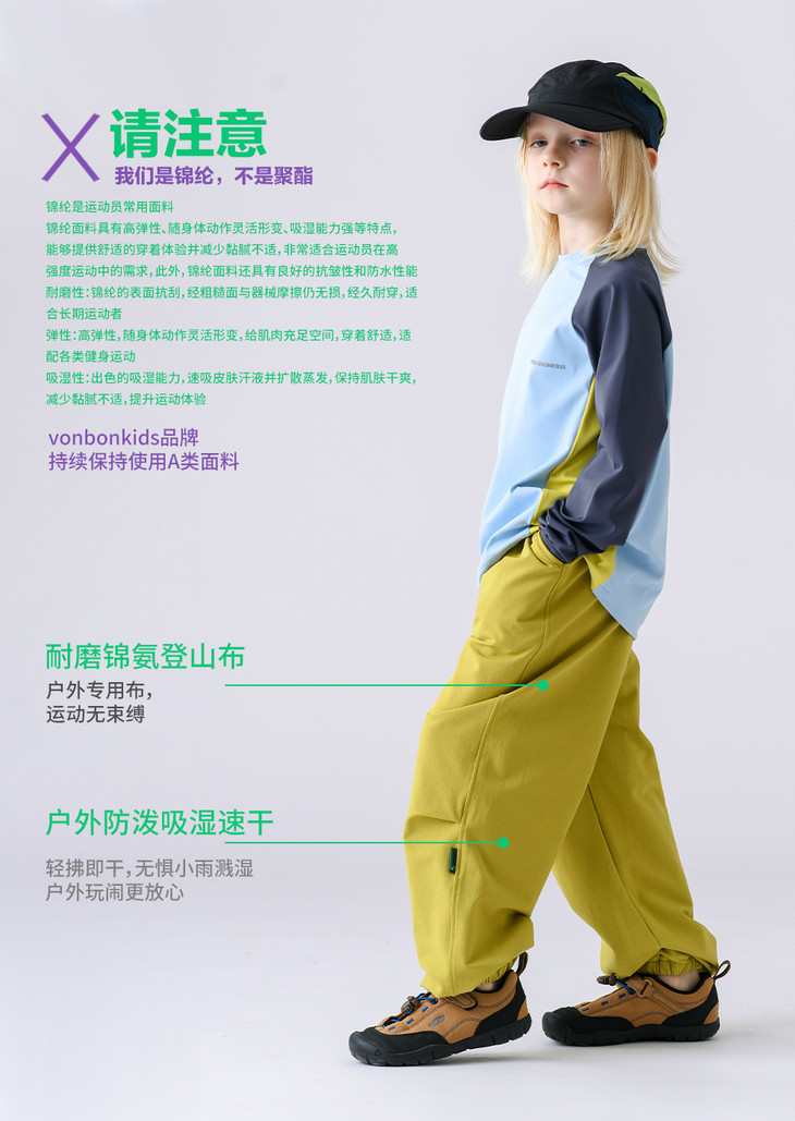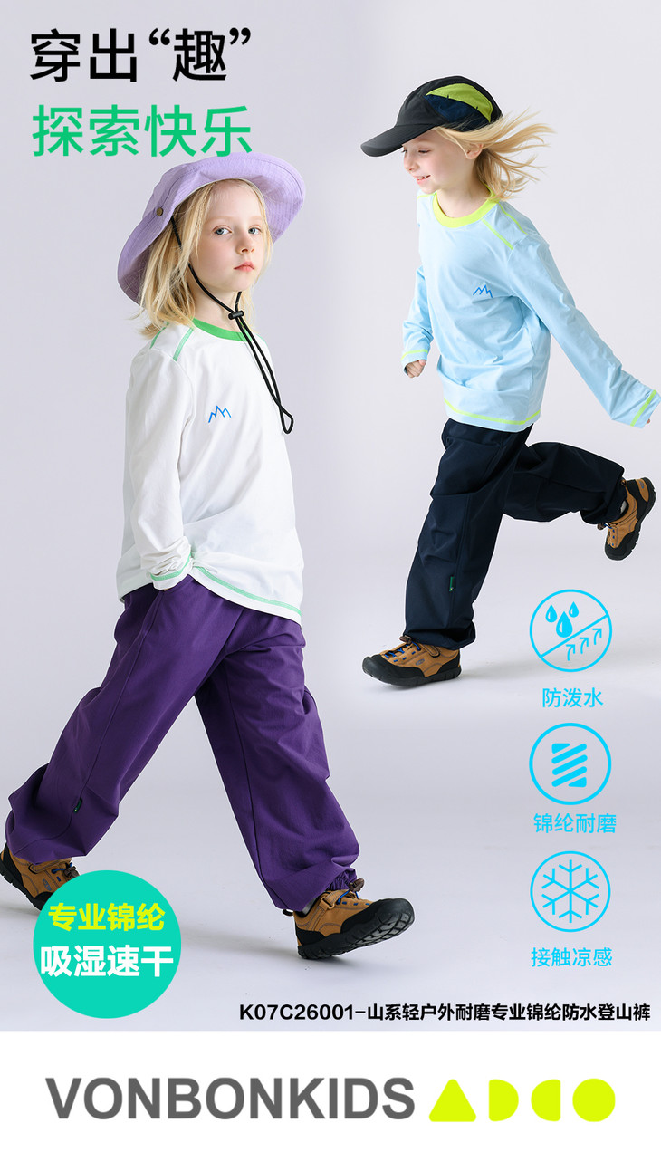 【vonbonkids 山系轻户外耐磨专业锦纶防水登山裤K07C26001款】❗️春季首发专业锦纶防水耐磨登山裤 娃户外撒欢不怕脏湿❗️ ✅防水面料!防风防污防泼水!