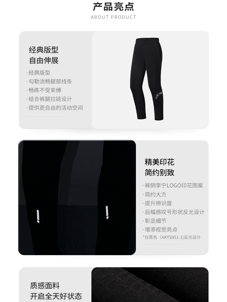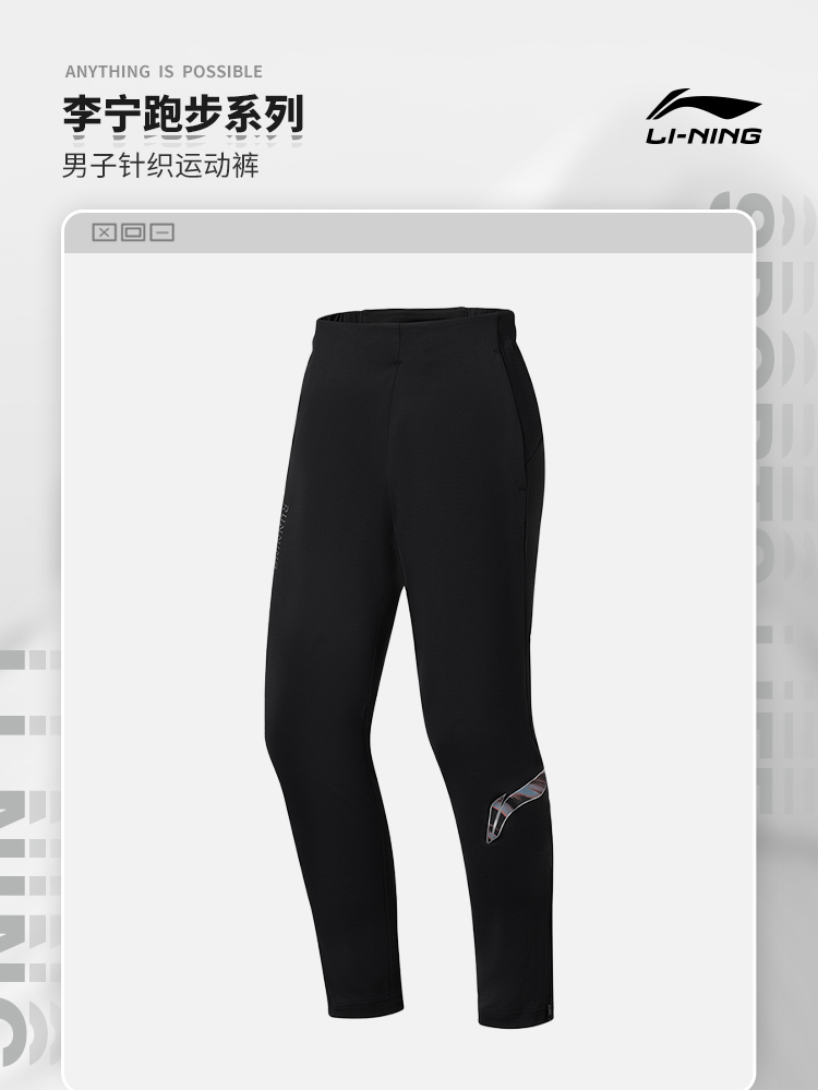 李宁 2022新款男士运动裤跑步系列男装冬季保暖反光直筒针织运动长裤